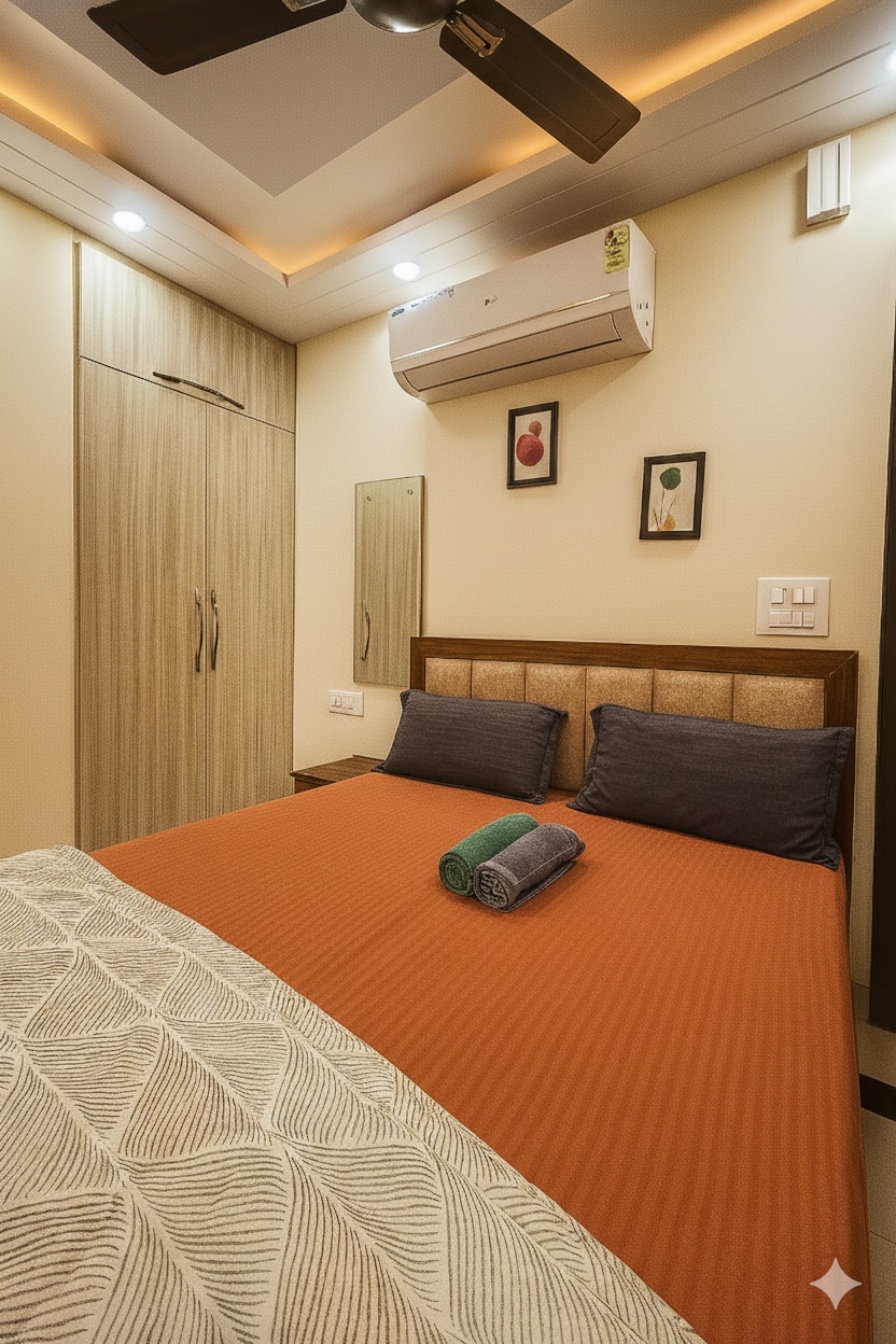Tu elegante 2BHK en el sur de Delhi Bienvenido a nuestro hermoso apartamento de 2 dormitorios, esta joya de la esquina está perfectamente ubicada en el corazón de Lajpat Nagar, sur de Delhi. Está rodeada de exuberantes parques verdes en 3 lados. Disfruta de habitaciones totalmente climatizadas, una cocina bien equipada con utensilios, TV LED, calentadores de agua e incluso un ascensor para un acceso sin complicaciones. Está a solo 2 minutos a pie del mercado de Lajpat Nagar, donde encontrarás tiendas, comida, etc. A solo 4 minutos de la estación de metro Lajpat Nagar.