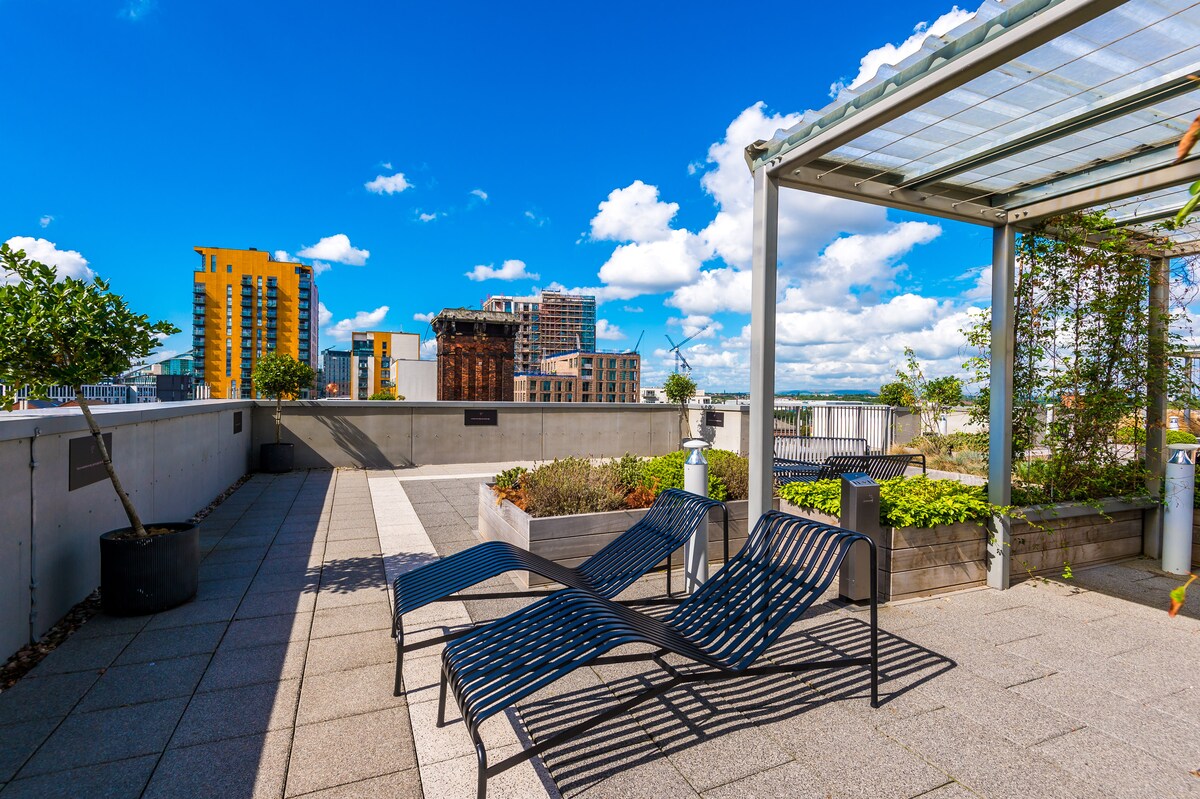 ¡Te damos la bienvenida a Manchester Tranquil Suite de CasaCity! Este acogedor apartamento 2BR/2BA se encuentra en Castlefield, a solo 9 minutos del centro de la ciudad de Manchester. Estarás en un vecindario vibrante con canales, bares frente al mar, espacios verdes y a pocos pasos de Castlefield Bowl. El apartamento ofrece un televisor inteligente y una cocina totalmente equipada con una máquina Nespresso. Ambos dormitorios bien equipados cuentan con una cama tamaño king y baño privado. Para mayor comodidad, ¡un Tesco Express está justo al lado!