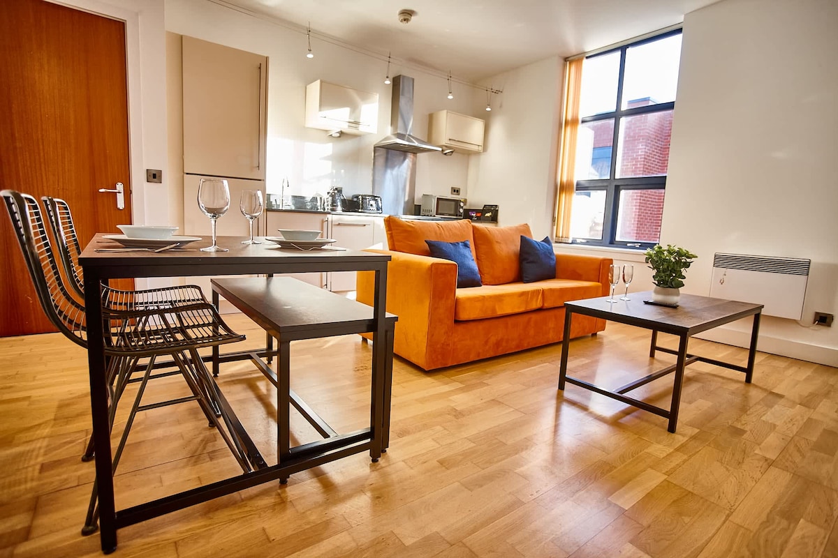 Bienvenido a tu hogar lejos de casa, administrado por City SuperHost, el equipo de anfitriones locales de confianza de Altrincham. Ya sea que estés aquí por trabajo o por una escapada de fin de semana, este elegante y espacioso apartamento está perfectamente preparado para una estadía cómoda. A pocos pasos del corazón de Altrincham, estarás cerca de tiendas boutique, cafeterías y nuestro favorito, Altrincham Market, una visita obligada para los amantes de la comida. Disfruta de la facilidad de estacionamiento gratuito, una cocina moderna totalmente equipada y Wi-Fi superrápido.