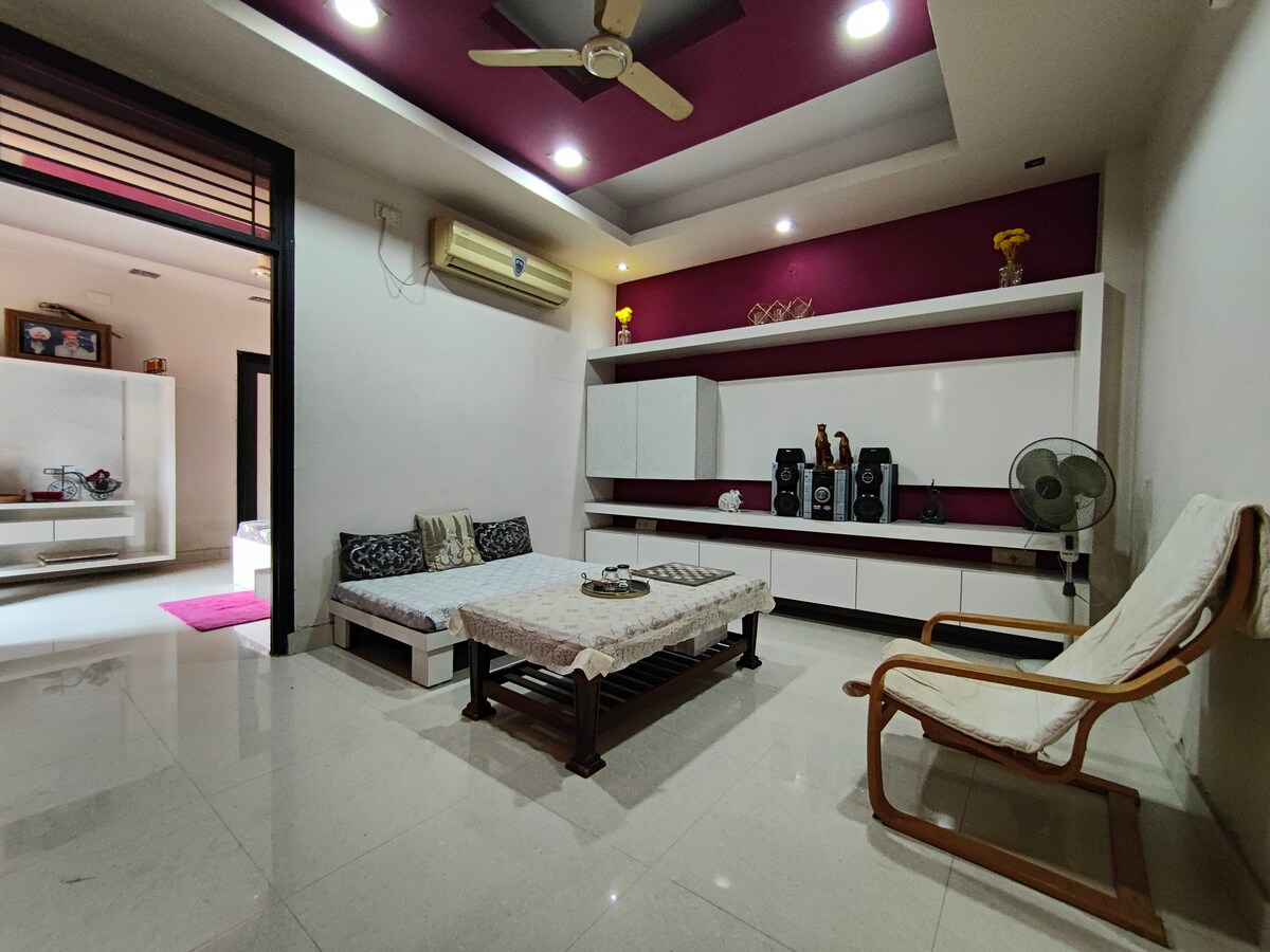 Unwind in our NCR retreat! Two spacious rooms, a fully equipped kitchen, and a sprawling 40m garden await you. Just 5 min walk to the metro, with 5 malls in 10 mins. Enjoy free parking and 24/7 security in our gated villa society. Immerse yourself in the harmonious blend of urban amenities and the soothing embrace of nature. Whether exploring the bustling city or rejuvenating in our verdant oasis, your stay promises a perfect balance of comfort and tranquility. Welcome to your peaceful escape!