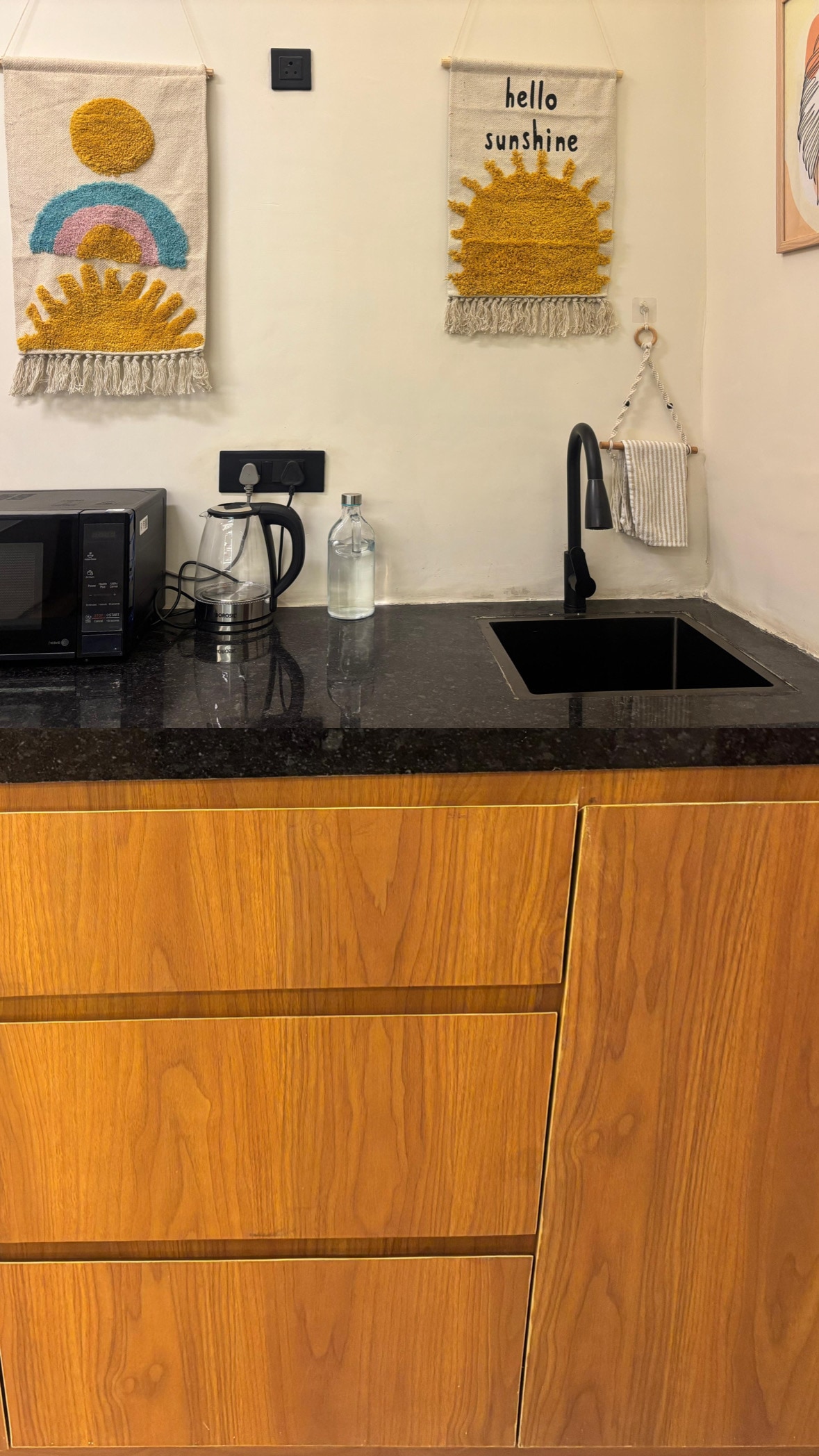 Situado en el corazón del sur de Delhi @GK 1, te damos la bienvenida a nuestro humilde hogar. Diseñado en un formato de estudio para aquellos que aman el espacio y la privacidad, este pequeño espacio cuenta con todo lo que necesitas para estancias cortas y largas. Tiene una cocina y un baño pequeños pero bien equipados. Con un nuevo Panasonic Split Ac instalado en 2025 Un elemento clave a tener en cuenta es la entrada, que es a través de una escalera de caracol desde la parte trasera de nuestra casa, que está muy céntrica, con un parque para correr y un parque para perros cerca.
