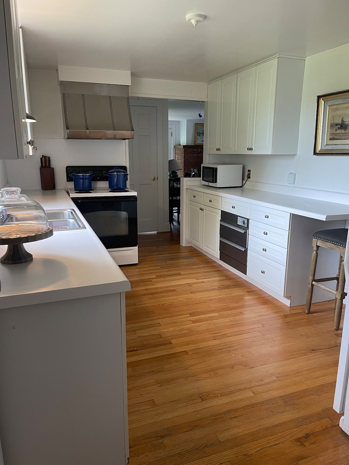 Esta es una casa de carruajes luminosa y espaciosa ubicada en el segundo piso en un barrio tranquilo y transitable. La sala de estar tiene una pantalla de cine desplegable, un sofá nuevo con diván y una cama tamaño queen extraíble. La cocina americana es nueva y cuenta con una cocina y horno Smeg, y un lavavajillas. El dormitorio tiene una cama ajustable tamaño queen, TV de 52 pulgadas con wifi y cable. El baño tiene una bañera de inmersión y una ducha a ras de suelo, un tocador con lavabos dobles. Hay un cuarto de lavado con lavadora y secadora. El propietario es agente inmobiliario.
