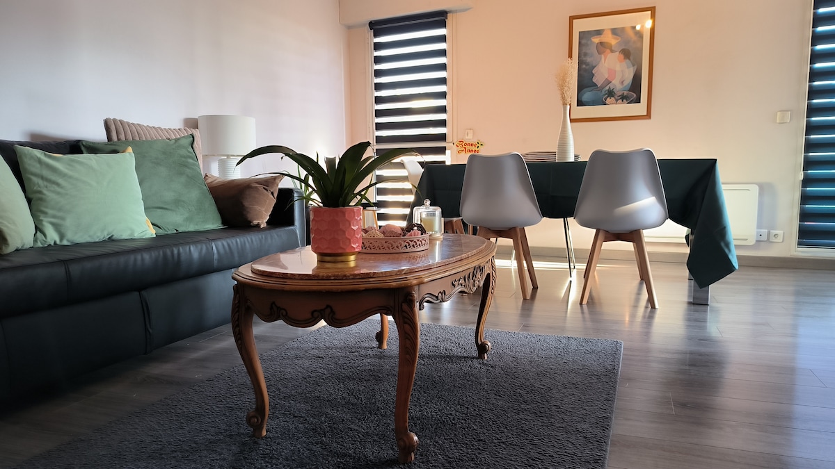 Escápese en pareja o con amigos en este apartamento atípico. Este sótano ofrece todas las comodidades de un apartamento con, en la planta baja, su cocina equipada y amueblada. Un baño, una sala de estar con un sofá cama que ofrece una cama de 140x190, un dormitorio con una cama tamaño Queen. En el sótano, la bodega ha sido completamente renovada y rediseñada para su disfrute. Un SPA para 4 personas, climatizado, con chorros de hidromasaje y un proyector para ver sus películas o series.