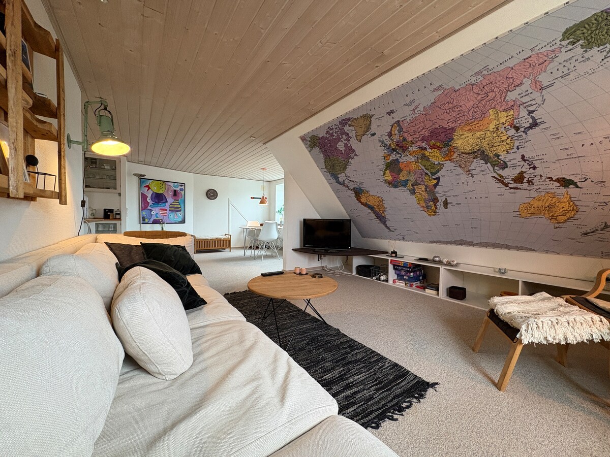 luminoso y acogedor apartamento en el ático con 45 m2 en el antiguo establo de una hermosa granja de 1894, situado junto al mar de Wadden entre la histórica ciudad de Ribe y la zona de metro de energía de Dinamarca Esbjerg. Hay una tienda de comestibles cerca (500 m), que está abierta los 7 días de la semana.