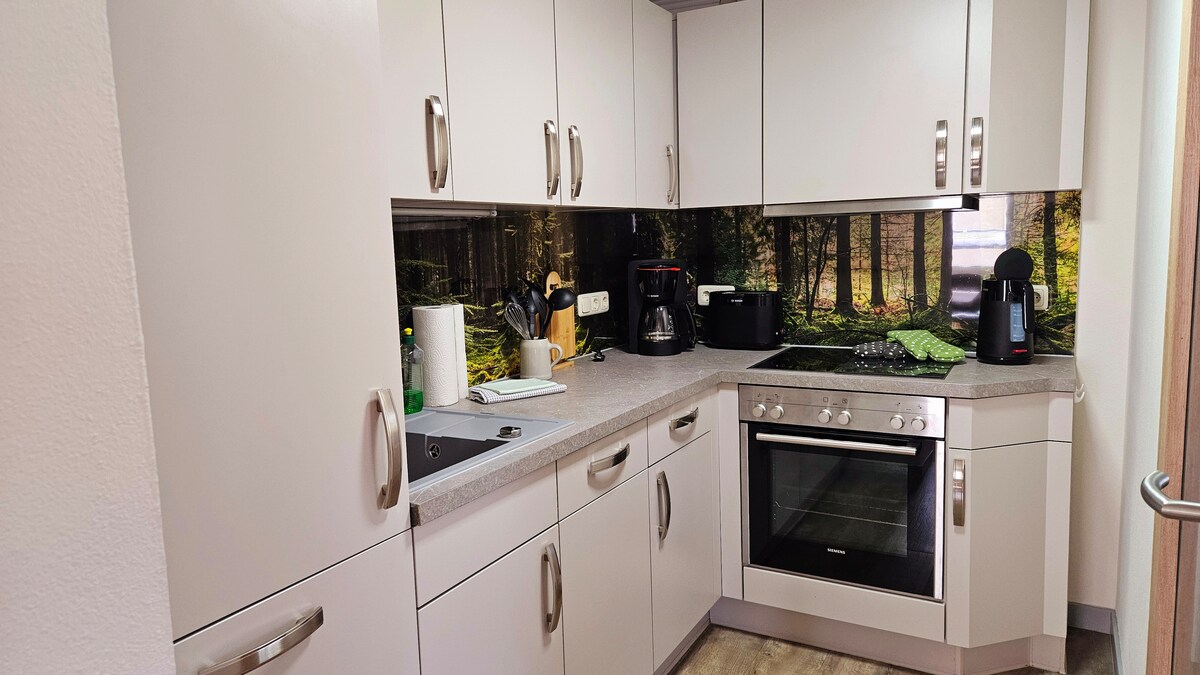 Relájate en este espacio tranquilo y elegante. Nuestro apartamento está equipado con todos los servicios necesarios, incluida una cocina totalmente equipada, así como un baño con ducha de efecto lluvia. Disfruta de la naturaleza en nuestras hermosas montañas de minerales mientras caminas y pedaleas. Puedes hojear nuestros libros o relajarte en nuestro hermoso jardín con una copa de vino o una taza de café. Visita nuestros pueblos de montaña y sumérgete en nuestras tradiciones Erzgebirge.