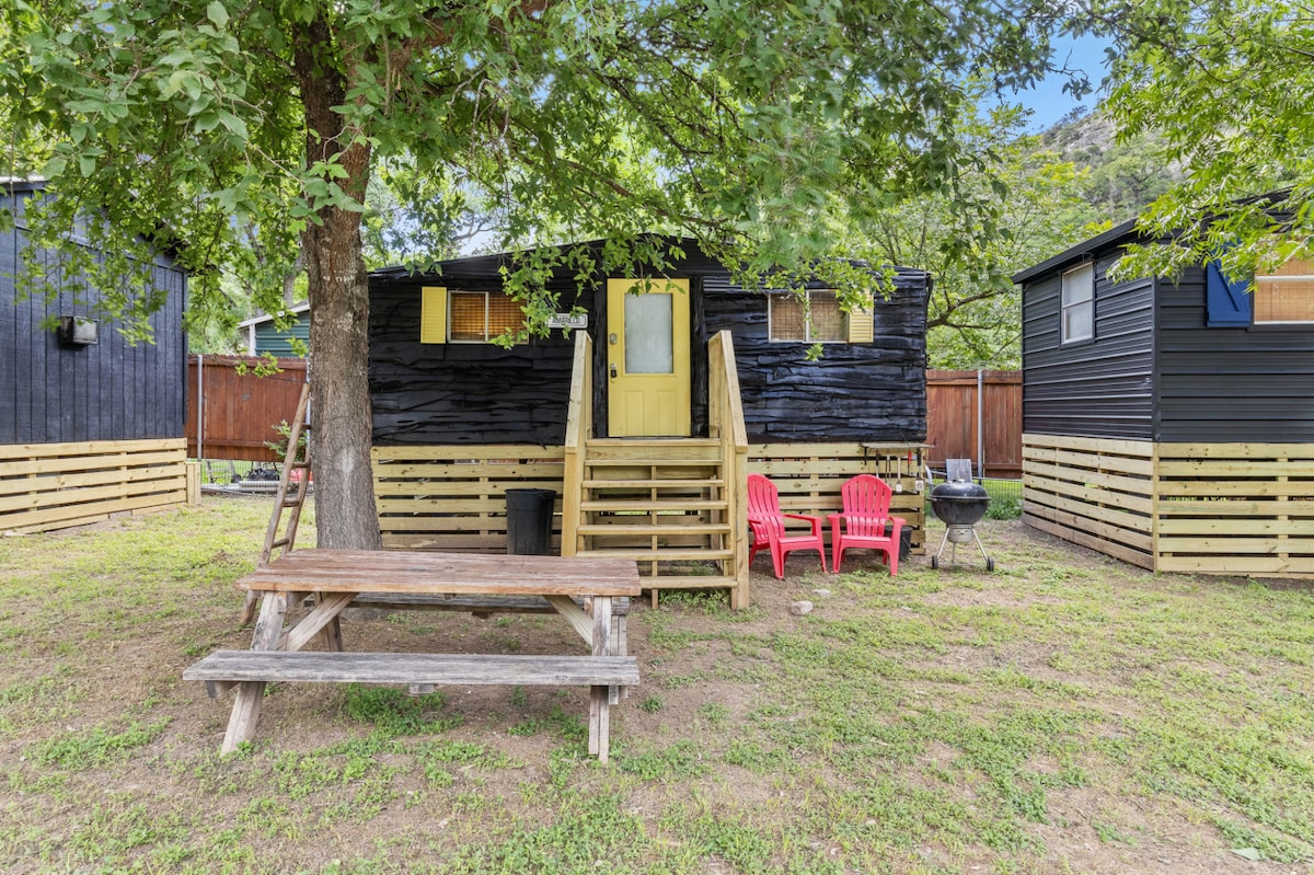 Disfruta de esta joya oculta en New Braunfels. Esta casa de 392 pies cuadrados de 1 dormitorio y 1 baño tiene su propia cocina completa con lavadora/secadora. El dormitorio tiene una cama tamaño queen y hay un sofá cama en el salón (el colchón extraíble se reemplazó en julio de 2024). ¡La casa está vallada para que tengas tu propio oasis privado! ¡También podrás hacer barbacoas en esas agradables noches de Texas!