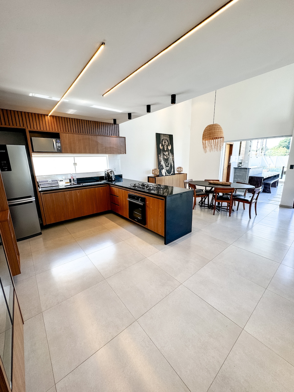 Extraordinaria ubicación y vista! Casa de alto refinamiento, en esquina, frente al club, gimnasio y laguna. Dispone de 4 suites climatizadas (una planta baja y 3 superiores), con otra dependencia (con aire acondicionado) y baño, TV de 65 pulgadas en el salón, congelador, cerveza... Cocina completamente equipada y área de servicio. Ocio completo: zona gourmet bien equipada, piscina, baño y gimnasio privado. MMartán toallas y ropa de cama. Comodidad y bienestar, ¡aquí lo encontrarás!