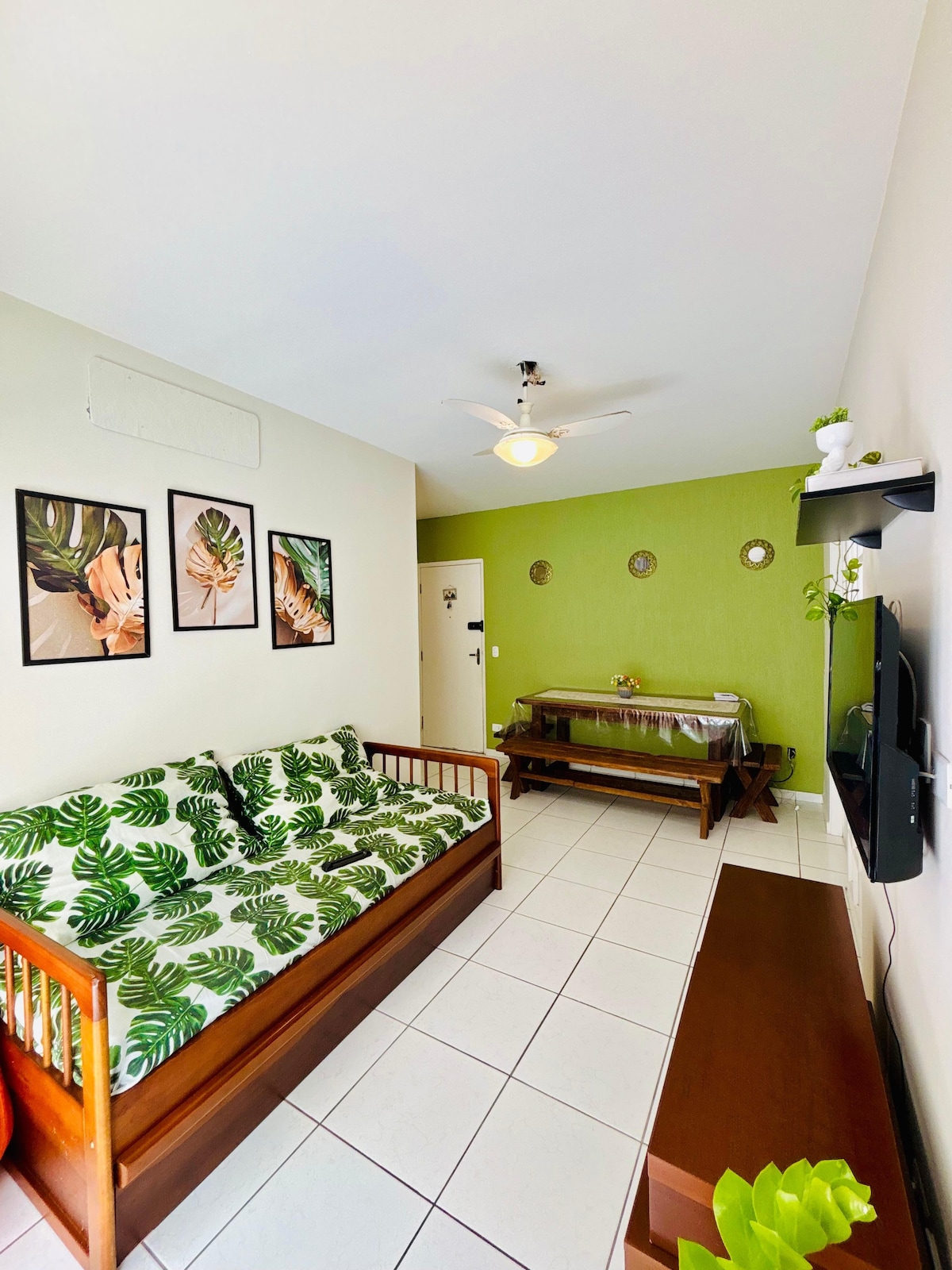 ¡Vacaciones de julio en Guarujá con ocio y comodidad! ❄️☀️ Nuestro apartamento en Home Resort Golden Sun tiene capacidad para 7 personas y está a 300 m de la playa de Enseada🏖️. 2 dormitorios (1 suite), aire acondicionado, balcón gourmet 🍽️ y 2 plazas de aparcamiento 🚗. Condominio con piscina climatizada🏊♀️, sauna, ludoteca🧸, gimnasio, pub🍻, espacio de coworking 💻 y seguridad las 24 horas. ¡Diversión y practicidad para toda la familia!
