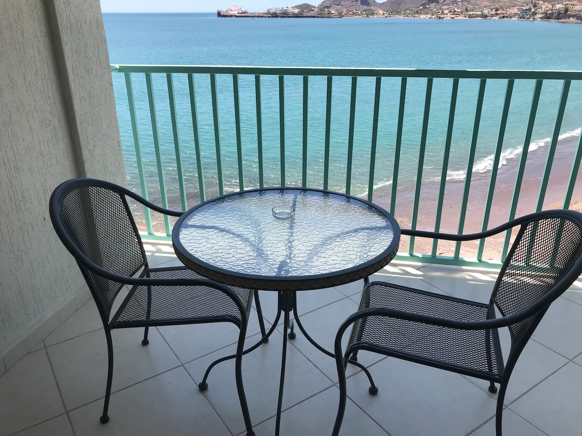 Hermoso Condominio totalmente equipado y decorado de una recámara con cama king y una cama individual plegable , dos baños completos, aire acondicionado central, cocina totalmente amueblada, wifi gratuito, a la orilla de la playa, alberca , Jacuzzi , chapoteadero, ubicado en el piso 4 con una hermosa vista al mar en el pueblo mágico de San Carlos, Sonora, México NOTA IMPORTANTE SOLO ENTRE SEMANA SE RENTA UNA SOLA NOCHE MÍNIMO, EN FIN DE SEMANA , SON DOS NOCHES MÍNIMO