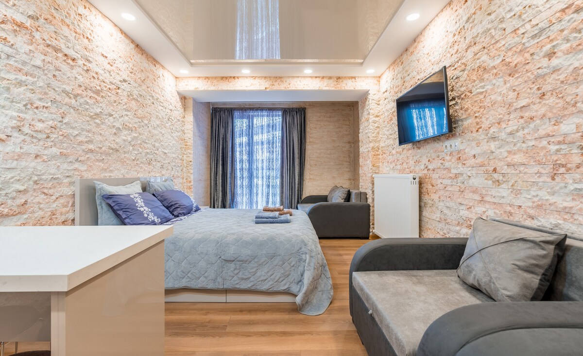 An apartment for rent in Gudauri, located in the 5-star hotel "Gudauri Loft." The hotel is ideally situated next to the first ski slope. The room features a corner kitchen, a bathroom, a refrigerator, a toaster, an electric cooker, an electric kettle, and various other kitchen appliances for your convenience. Additionally, the room includes a plasma TV, high-speed internet, free Wi-Fi, stylish furniture, fresh bed linen, and towels. We wish you a pleasant and memorable stay!