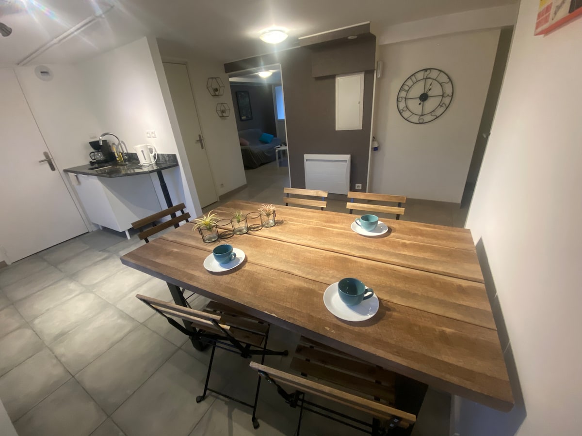 Apartamento de 45 m2, situado en la planta baja de nuestra casa con entrada independiente, que nos tomamos el tiempo para renovar para darle la bienvenida. Aquí no hay conserjería, ¡nosotros nos encargamos de todo! ;-)) Ropa de cama nueva y cómoda para las 2 camas. Tendrá una ubicación ideal para visitar Brest y sus alrededores, durante sus viajes en familia o sus viajes de negocios. Siempre tratamos de estar presentes para darle la bienvenida, de lo contrario es posible utilizar la caja de llaves presente.