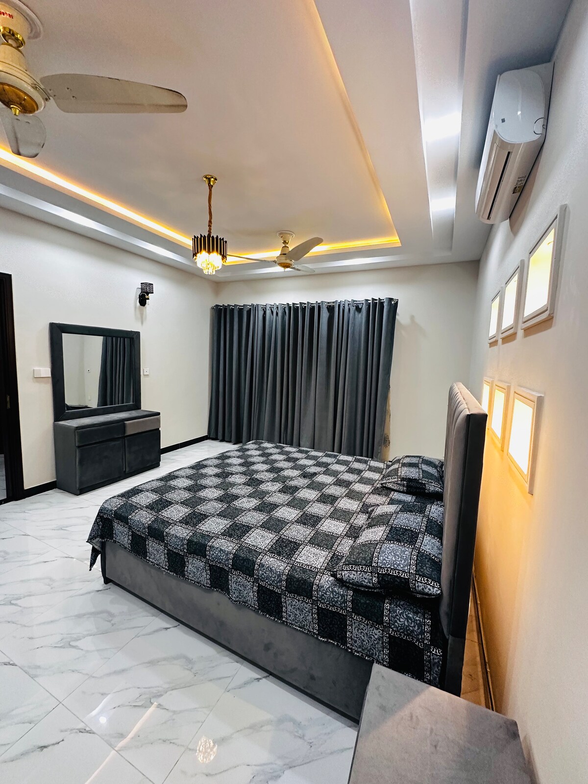Bienvenido a Stay Luxe, un nuevo apartamento de lujo de 1 dormitorio diseñado para la máxima comodidad. Ubicado en la zona privilegiada de Bahria Town, este elegante espacio ofrece un balcón orientado al frente con una hermosa vista, perfecto para relajarse después de un largo día. Totalmente amueblado con comodidades modernas, Wi-Fi de alta velocidad y TV inteligente. Una mezcla perfecta de elegancia y facilidad, ¡realmente vale la pena tu viaje! Aviso: ¡Las parejas no⚠️ casadas están estrictamente prohibidas!