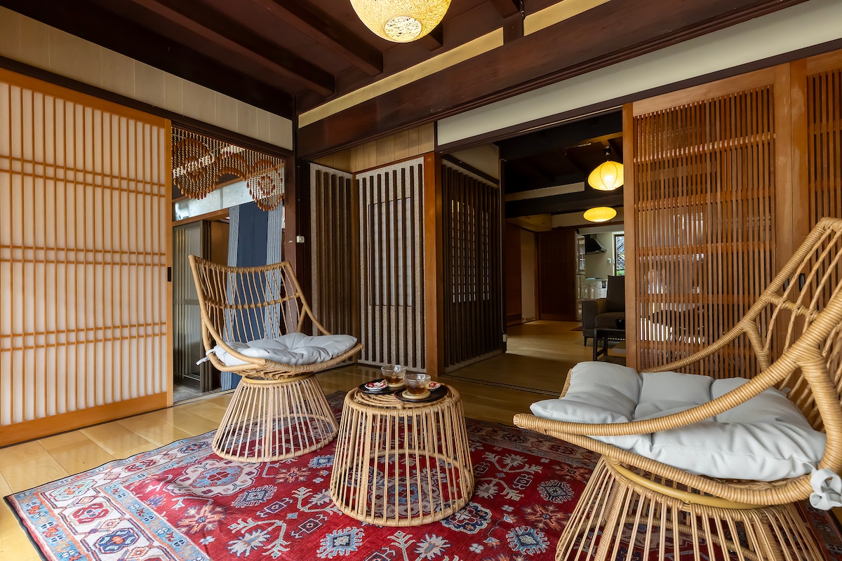 Disfruta del encanto del Japón tradicional con todos los sentidos en esta casa adosada de fina factura y el jardín que la rodea. Gujo Hachiman es conocida como la «ciudad del agua», y el propietario y arquitecto Yuri Fujisawa ha restaurado con cariño esta encantadora residencia para encarnar el espíritu del agua. Este barrio, situado bajo el castillo medieval de la ciudad, estaba reservado para los samuráis de alto rango. Aunque el paisaje urbano histórico está bien conservado, sigue siendo un barrio auténtico habitado por gente local muy amable.