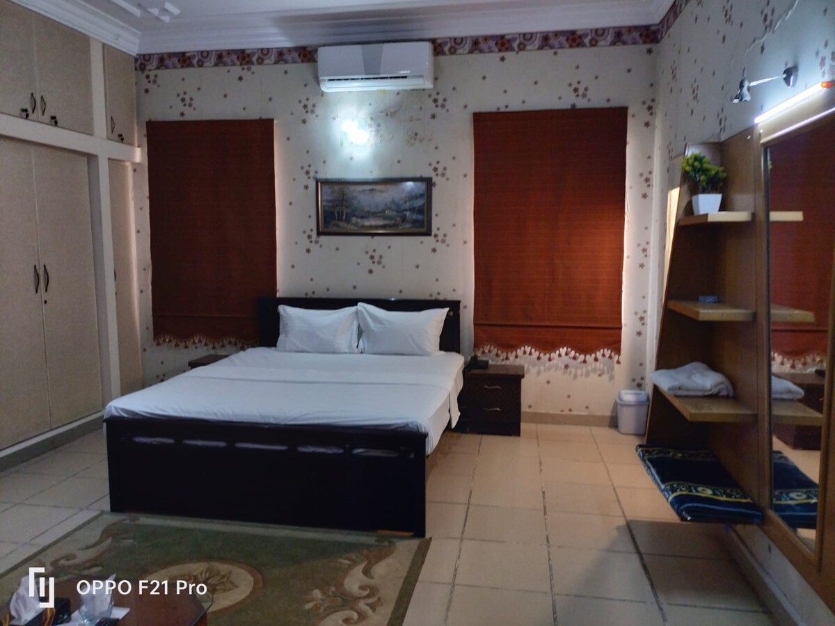 Spacious 6-Bedroom Guest House in Karachi Enjoy comfort and convenience in our fully equipped guest house, featuring modern amenities, cozy bedrooms, a full kitchen, and 24/7 security. Perfect for families, groups, or business travelers. Book your ideal stay today! Fully furnished bedrooms with comfortable bedding. A modern kitchen equipped with all essentials. Spacious living and dining areas for relaxation or work. High-speed Wi-Fi and smart TVs. 24/7 security and backup power.