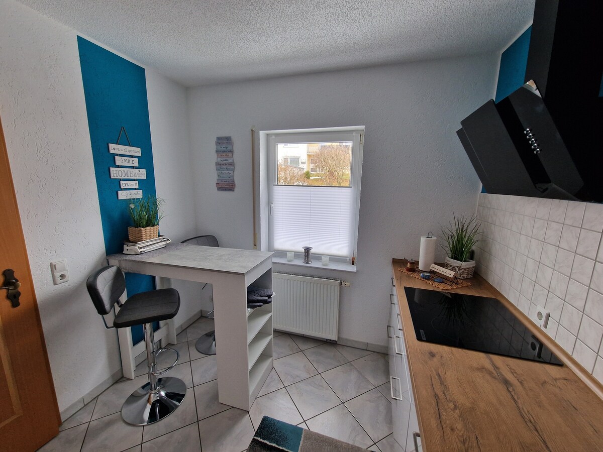 Bienvenido a nuestro encantador apartamento nivelado con su propia entrada a la casa, perfecto para una estancia relajante. La propiedad ofrece todo lo que necesitas: una cocina totalmente equipada, TV por cable, así como wifi gratuito para relajarse por las noches o trabajar desde casa. Un punto culminante especial es el prado adyacente con cenador, ideal para un desayuno acogedor al aire libre. Ya sea para un fin de semana o una estancia más larga, aquí puedes sentirte como en casa.
