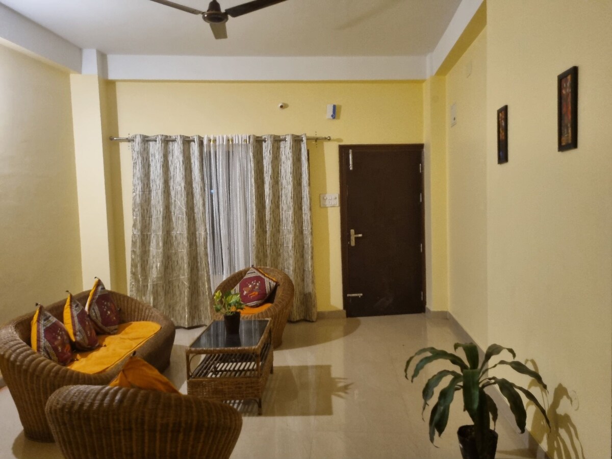 A bright airy open concept perfect for relaxing and connecting featuring large windows with natural light, a comfortable living area, a compact cute kitchen & dinning area with 1 king size bed. 3 balcony with one attached bathroom ideal for groups or solo travelers. Flipkart minutes same building downstairs. 1 min to local groceries & retail. 1 min to Bhetapara Hockey Stadium. 5 min to Sarusojai stadium. 5 min to Hospital. 10 min to Khanapara. 35 min to Kamakhya Mandir/Airport/ Railway Station.