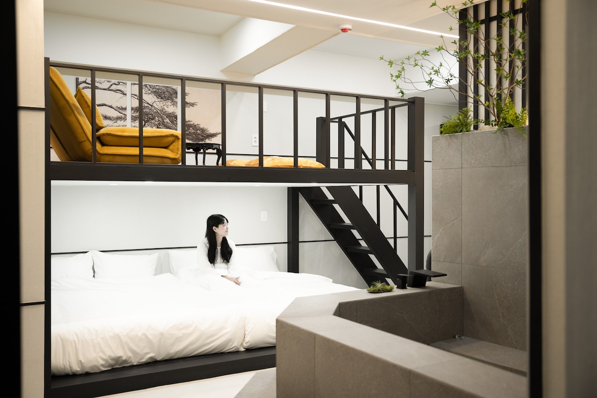 Limpio y amable/Buena conexión a Internet/Sensación emotiva/Chimenea/Netflix gratis/Máquina de juegos de arcade/Cerca de Hwangridan-gil/A 10 minutos de los lugares turísticos