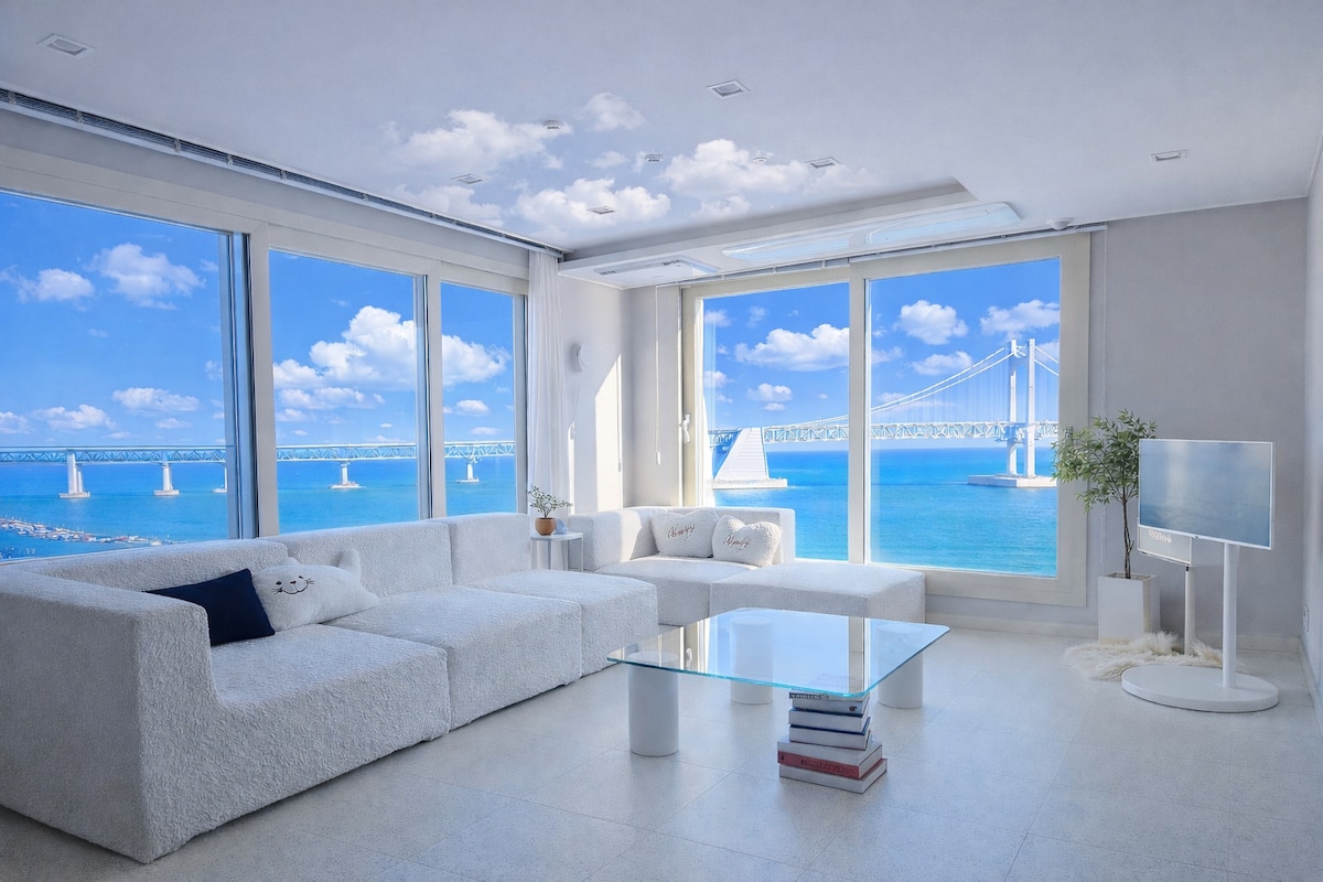 ❤️최근 방 확장 공사를 하여 침실 2개, 거실 1개의 구조로 퀸 침대 1개, 더블 침대 2개로 여유있게 주무실수 있어요:) 안리빌라(Anri villa)를 찾아주셔서 감사합니다. 🎇초근접 광안대교를 볼 수 있는 환상적인 브릿지 뷰(full ocean view) 💕거실과 침실 모두에서 볼 수 있는 힐링 풀오션뷰와 광안대교뷰 "인생샷을 남겨보세요"💖 신축 20평형대 프리미엄급 숙소로👍 매일 침구류 세탁과 살균소독 및 청소, 청결을 최우선으로 합니다.😉🎇 🍃숙소 건물내 지하1~3층 무료 주차장(자주식) 🍃스마트TV로 넷플릭스 유튜브 등을 즐겨보세요. 🍃바로 옆 밀락더마켓, 해운대 차로 10분 거리 🍃1층 카페, 와인샵 등 편의시설이 있어요. 🍃🍃 안티스트레스 티(유기농)와 핸드드립 커피, 인센스가 준비되어 있습니다. 마음이 복잡했다면 따뜻한 차와 향과 함께 조금은 해소되길 바라요.