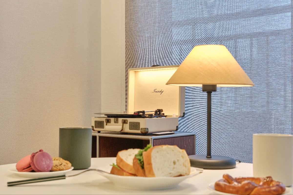 Situado entre un apartamento antiguo y un edificio urbano Es un espacio que mi gusto ha impregnado, que diseñé y arreglé yo mismo. Para mí, es un lugar más significativo y cómodo que en cualquier otro lugar. Espero que sea un recuerdo precioso aquí. --- Situado a 5 minutos del alojamiento Western Dome, Lake Park y Madu Station. Mart y las instalaciones de conveniencia están cerca, y el transporte público es conveniente. --- Acceso de huéspedes Puedes disfrutar cómodamente de películas y dramas conectando la televisión QLED 4K de 65 pulgadas, Netflix, Disney y YouTube. (26py) Dormitorio 1- 1 cama tamaño king, 2 dormitorios, 2 camas individuales. La cocina de 3 metros de largo es fácil cocinar y es apta para familias. Tenemos altavoces y estilistas Bluetooth. Los utensilios y granos de café de goteo a mano están disponibles.