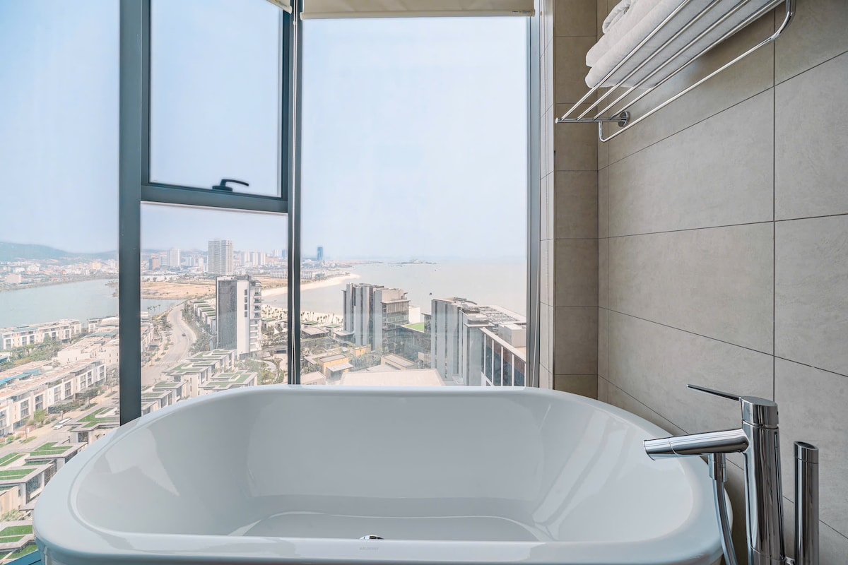 ✨ Increíble apartamento dúplex sobre la bahía de Ha Long con una vista increíble ✨ Soy Tony, tu anfitrión, y me emociona darte la bienvenida a mi alojamiento ubicado dentro del hotel de 5 estrellas, Citadines Marina Ha Long, justo en primera línea de playa. Ubicada en el piso 30 más alto, la habitación cuenta con un balcón privado con impresionantes vistas a la bahía de Ha Long 🌊🌅. También puedes disfrutar de las maravillosas instalaciones del hotel: skybar 🍸, restaurantes, gimnasio y piscinas cubiertas y al aire libre 🏊♂️ (el precio de la habitación no incluye estos servicios)