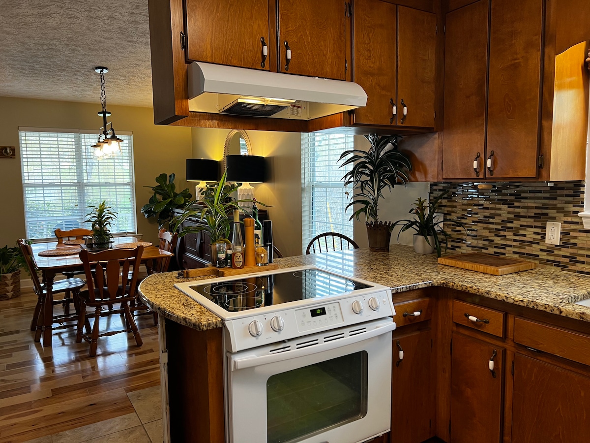 Mi alojamiento está cerca de las montañas Smoky, Helen, Tallulah Gorge, cascadas, rutas de senderismo, lagos de montaña, a una hora de Atlanta, parques, excelentes vistas, restaurantes, arte y cultura. Pesca de truchas de clase mundial a solo 20 minutos, ¡donde atrapé una de 10 libras y 26 pulgadas! Acepto parejas, aventureros solitarios, familias (con hijos) y grupos grandes. Las rutas de senderismo y cascadas populares están a solo 3 millas de distancia. Accesible para personas con discapacidad, incluida la ducha. Televisión con docenas de películas en DVD, sin cable ni satélite.