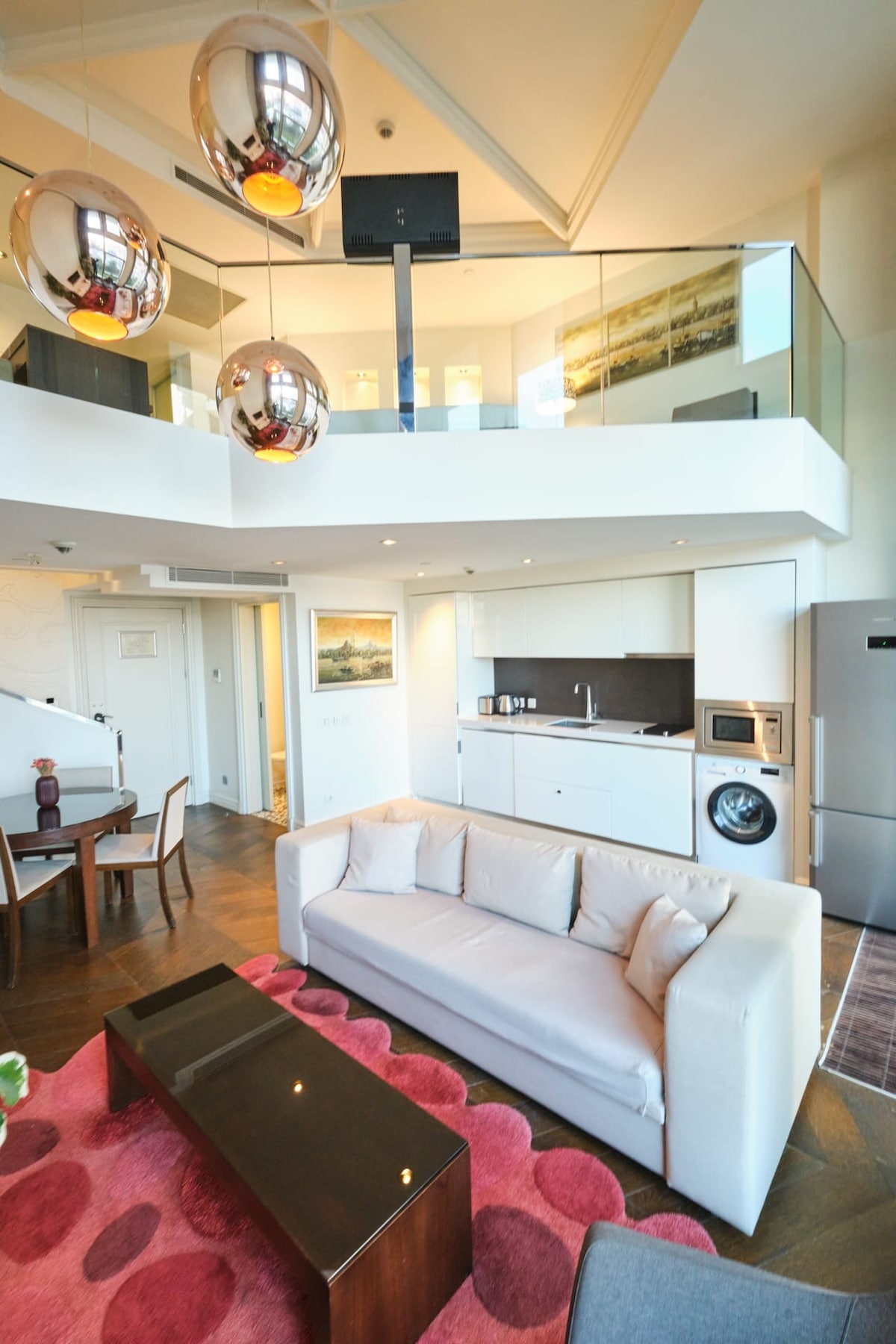 Our brand-new duplex is located in Hacımimmi Gardens, a modern residence in the heart of Istanbul. Within walking distance to Galata, Karaköy, and Istiklal, you’ll find historic streets, the seaside, and trendy cafes all around. The residence offers a peaceful courtyard with a preserved cistern, 24/7 security, high-speed Wi-Fi, parking, generator, and a shared gym. Perfect for couples, friends, or solo travelers seeking comfort and style..