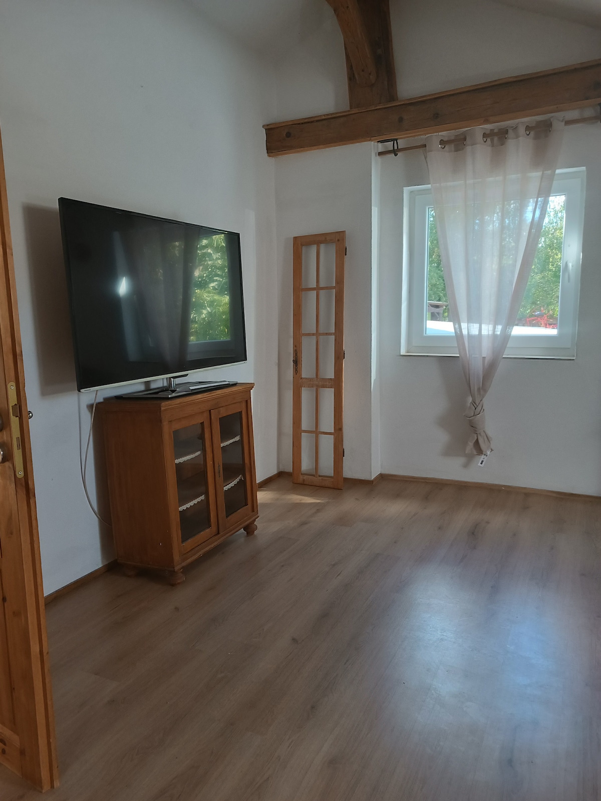 Este gran estudio destaca por su techo de vigas a la vista, que crea un ambiente muy acogedor. En la casa de madera hay una ventilación permanente. En el dormitorio, una gran cama de agua (2 m x 2,20 m) garantiza un buen descanso. El alojamiento ha sido amueblado con mucho cariño. La cocina es pequeña pero está muy bien equipada. Barbacoa y sol en el jardín. Estación de carga para coches eléctricos (0,40 €/kWh) disponible, 2 bicicletas eléctricas Cube y Thule Cab2 se pueden alquilar, ¡sauna exterior nueva!