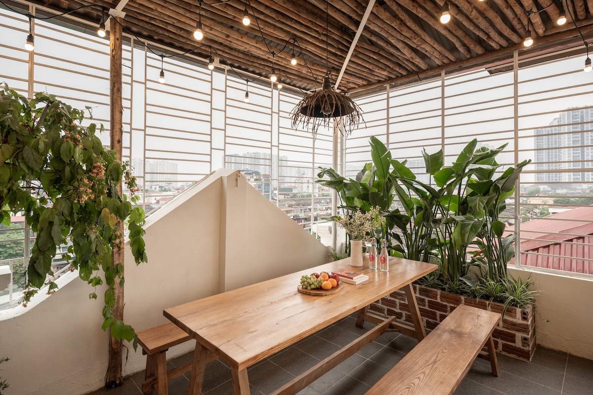 An beautiful Apartment with top-floor surrounded by trees can “FEEL LIKE YOU ARE IN A TREEHOUSE” Nestled in the heart of the city, our unique Apt is located in a French collective quarter which brings you an old Hanoi trace and a nostalgic atmosphere. Immerse yourself a blend of timeless here and enjoying the comfort and convenience of modern living in the Apartment. This two-floor apartment is the perfect getaway for families, friends, or business travellers looking for an unforgettable stay..