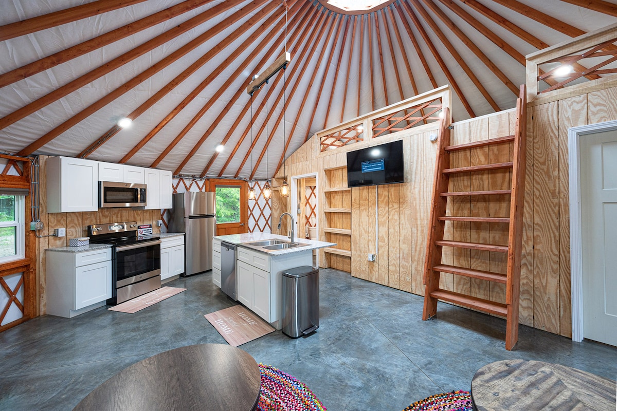¡YURTA de 30 pies con un loft y todos los lujos de un hogar (incluyendo CALEFACCIÓN y AIRE ACONDICIONADO)! Este espacio único está situado en nuestra granja de 50 acres con kilómetros de senderos y mucha privacidad. ¡Esta no es una tienda de campaña ordinaria! Esto es glamping en su máxima expresión con una cocina completa, fontanería regular, control del clima y todas las comodidades de un hogar. Ten en cuenta que lo anunciamos como 2 dormitorios, pero el segundo dormitorio es una zona loft abierta y no privada. ¡Te encantará tu estancia en la MEGA YURTA de Maggie!