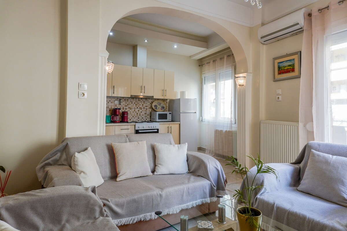 Το διαμέρισμα βρίσκεται στο κέντρο της πόλης, μόλις λίγα λεπτά με τα πόδια από την κεντρική πλατεία και τα κύρια εμπορικά κέντρα. Είναι πλήρως εξοπλισμένο διαμέρισμα για 4 άτομα στο κέντρο της πόλης, δίπλα στην Πλατεία Μαβίλη της Θεσσαλονίκης. Διαθέτει Wi-Fi, κλιματισμό και κουζίνα. Η κουζίνα είναι πλήρως εξοπλισμένη με όλες τις σύγχρονες συσκευές και ένα μεγάλο τραπέζι φαγητού. Σε μικρή απόσταση από δύο σταθμούς μετρό, προσφέροντας εύκολη πρόσβαση σε όλη την πόλη.