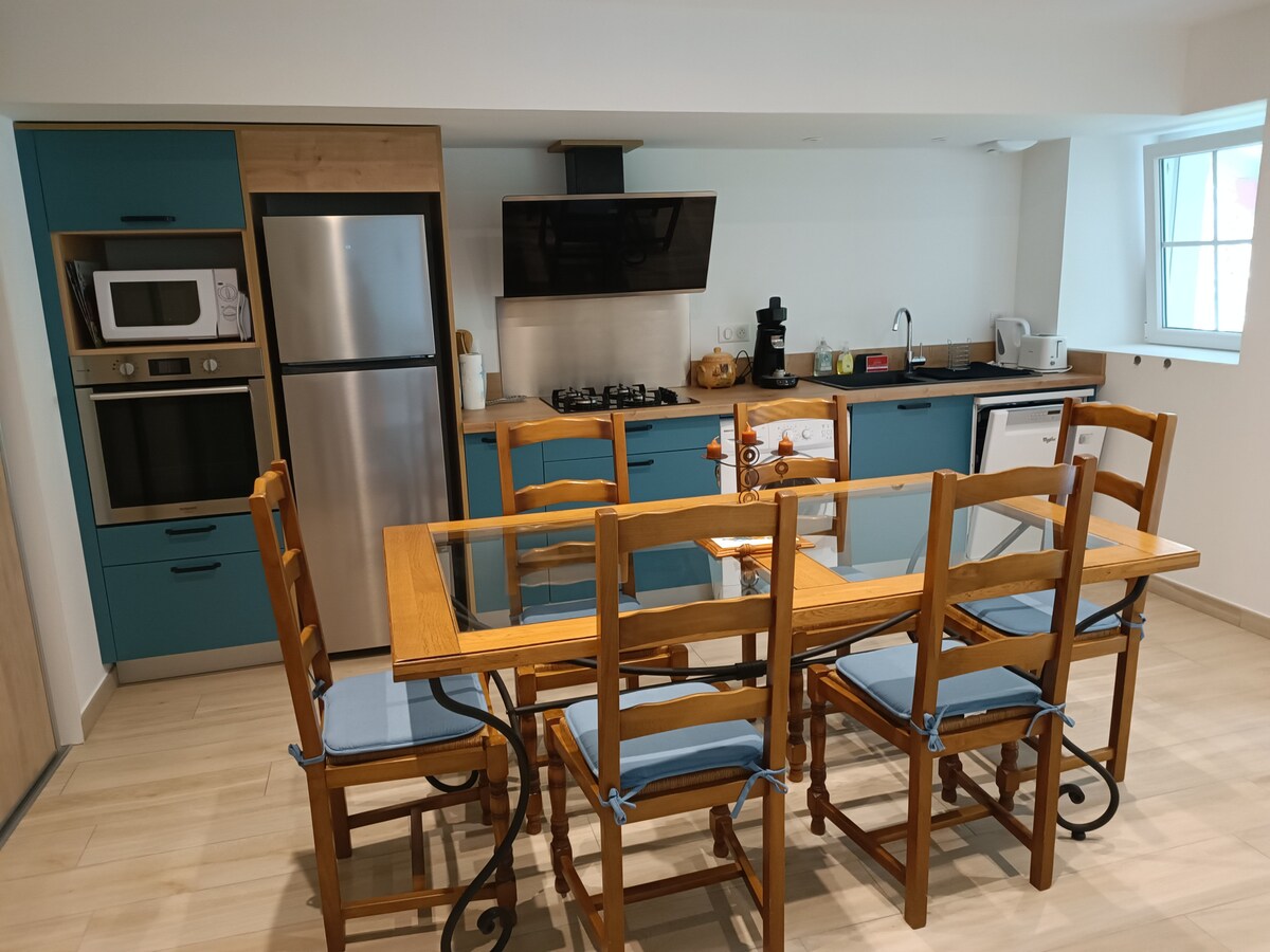 En el corazón del pueblo de Cambo-les-Bains, ofrecemos un apartamento independiente (80 m2) y contiguo a una gran casa familiar. En la planta baja encontrará una sala de estar, una mesa de comedor con una cocina equipada. El primer piso consta de un dormitorio principal con un baño/aseo y una sala de estar abierta con una cama nido. Ideal para una pareja o una pareja con hijos. El alojamiento está situado muy cerca del mercado, tiendas y paseos a pie.
