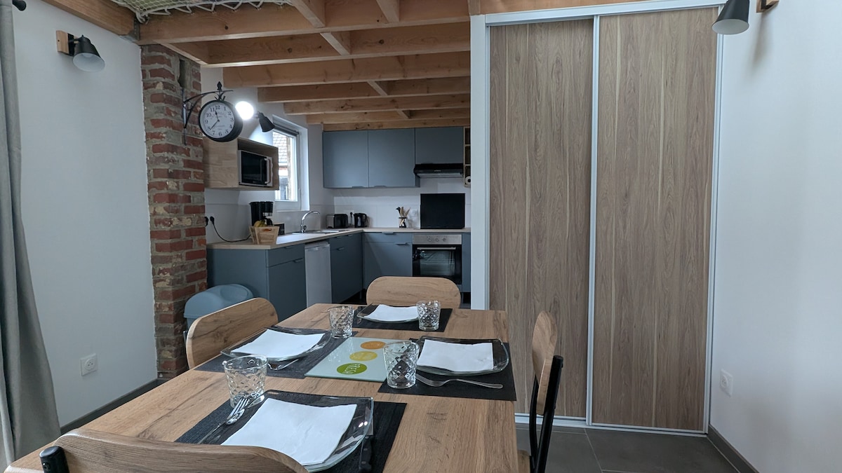 Esperamos darle la bienvenida pronto en nuestro nuevo apartamento de «La Maison Rouge» situado en el eje de la autopista y SNCF Lille/Dunkerque, estación de tren y salida de la autopista cerca del pueblo). - Apartamento independiente - Amplia terraza con vistas panorámicas al campo - Estufa de leña - Cocina totalmente equipada + lavadora secadora - Ropa de cama 180/200 cuidadosamente elegida para garantizar la máxima comodidad - Wifi de fibra ultrarrápida, Apple y Orange TV - Numerosas tiendas a poca distancia