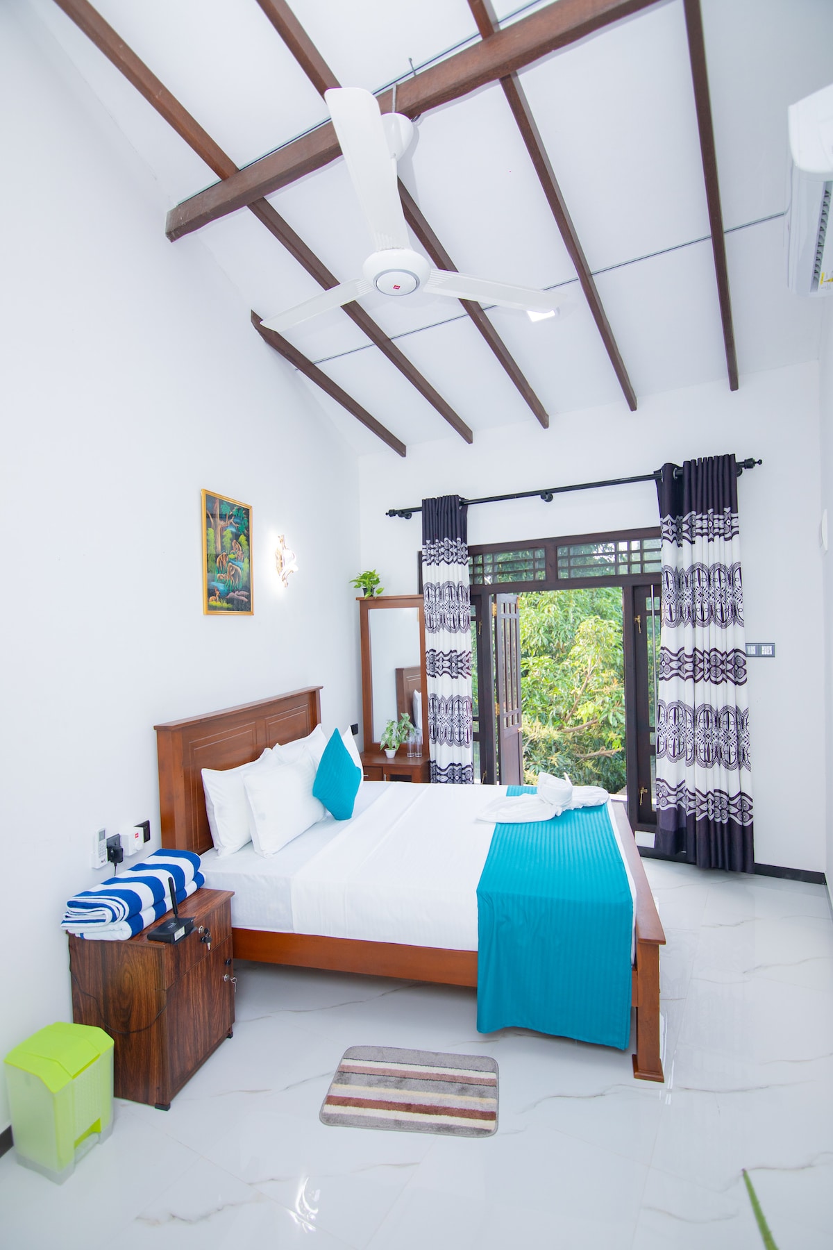 ¡Te damos la bienvenida a tu tranquilo refugio en Tangalle! Nuestra habitación premium es perfecta para parejas o viajeros solitarios que buscan comodidad y tranquilidad. Disfruta de una cama acogedora, duchas de agua caliente y todos los servicios que necesitas para disfrutar de una estancia relajante. Estarás a solo 400 metros de la playa, ideal para paseos matutinos, puestas de sol o un rápido paseo en tuk-tuk. Comienza el día con un té o café recién hecho y relájate en un ambiente tranquilo y agradable. ¡Nos encantará recibirte y hacer que tu estancia sea inolvidable!