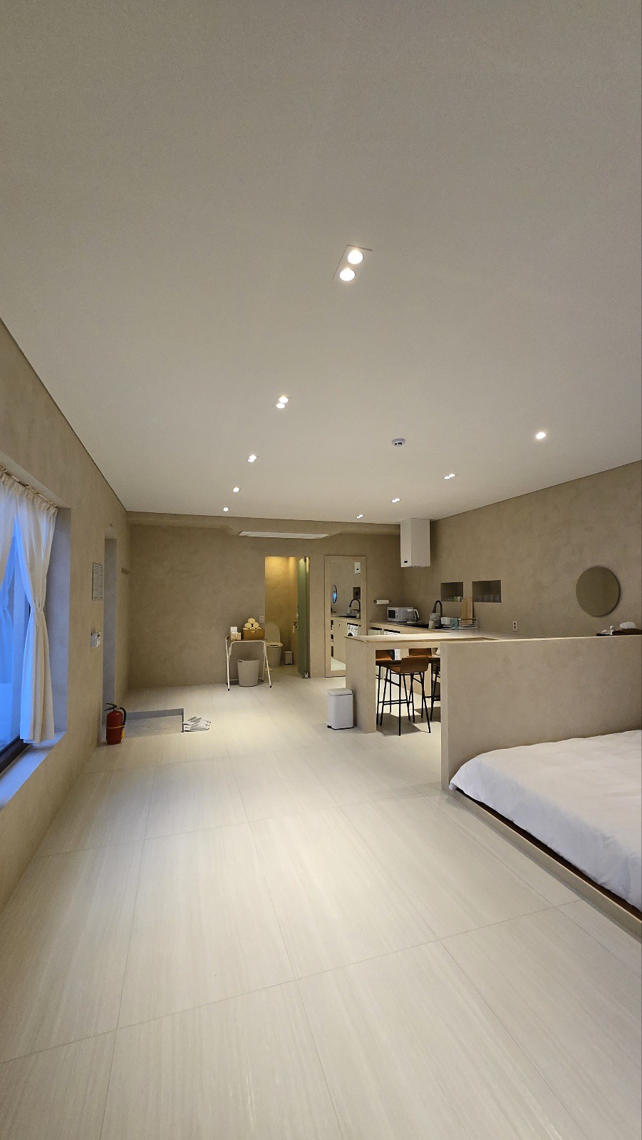 Ven para deshacerte de la mente complicada. Lo dejé vacío para que no tuviera pensamientos complicados. Tanto en un viaje lleno como en un viaje vacío, necesitas un momento para despejarte. Gracias a Hunduk, hemos creado un espacio cómodo para despejar la mente durante el descanso. Me deshice de la mayor parte y dejé solo el paisaje de Jeju. En las cuatro grandes ventanas del oeste y del sur, hay un amplio campo de tangerinas. Mientras cocinas en la cocina, mientras lees un libro, Mientras tomas café, puedes ver los campos de tangerinas que cambian silenciosamente en cada momento. La cocina es de tamaño generoso para que pueda llenar su corazón vacío con una deliciosa comida. Una habitación donde no se oye ningún ruido, excepto el sonido nocturno de los campos de tangerinas que se escuchan a lo lejos. Hay ropa de cama mullida preparada Toallas generosas. La calidez es básica. No hay nada especial, pero solo tengo lo que necesito en el baño. Hay una playa, un supermercado y una tienda de conveniencia a 5 minutos en coche, por lo que puede estar tranquilo en cualquier momento y obtener lo que quiera si solo lo desea.