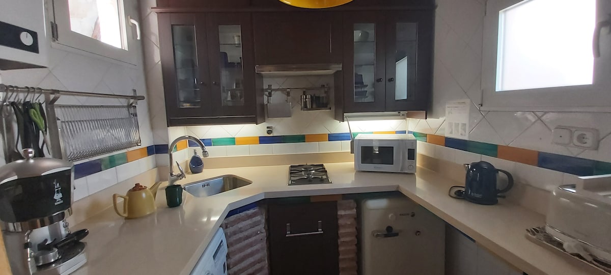 CASA DEL BESO La casa es muy autentica, con terraza y vistas a la Alhambra, fue diseñada y rehabilitada por nuestro padre, Manuel, un arquitecto que emigró con nuestros abuelos y que años más tarde volvió a su tierra, a nuestra querida Granada. Se encuentra en una calle peatonal del Bajo Albayzin, a 300 m. de Plaza Nueva, un barrio de patrimonio de la UNESCO en gran parte peatonal. Gracias a la ubicación no necesitaréis el coche y podréis ir caminando a los lugares más emblemáticos de Granada.