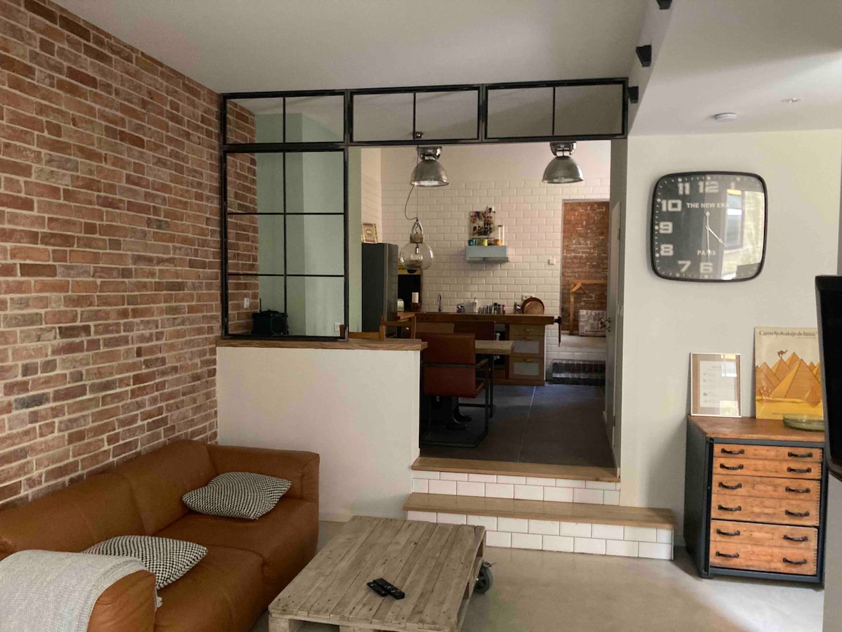 El loft se creó a partir de antiguos espacios comerciales. Tiene un diseño abierto y contiene muchos detalles de estilo industrial. Ladrillos viejos, hormigón pulido y sellado, madera de un roble viejo, piezas viejas de máquinas de hierro fundido y muchas otras cosas únicas han contribuido a que el loft se convierta en un lugar especial. El loft está situado en un tranquilo patio interior. Se encuentra en la planta baja y es fácilmente accesible.