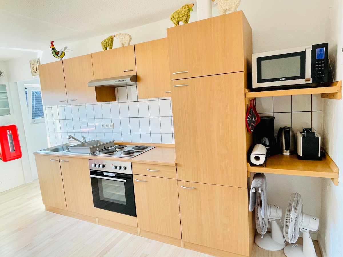 Acogedor apartamento con una decoración cálida. Hay disponibles cafetera y hervidor de agua, así como tostadora, una placa de cocción de 2 fuegos y una nevera. Hay un vestidor disponible. ¡Ubicación rural! Muchas actividades de ocio cerca, para los niños el Rastiland, el Wisentgehege. El Harz, el lago Steinhuder Meer y el Weserbergland son rápidos y fáciles de llegar. Un establo de caballos justo al lado de la casa, así como hermosas iglesias de monasterios..... ¡En resumen, un lugar para soñar!
