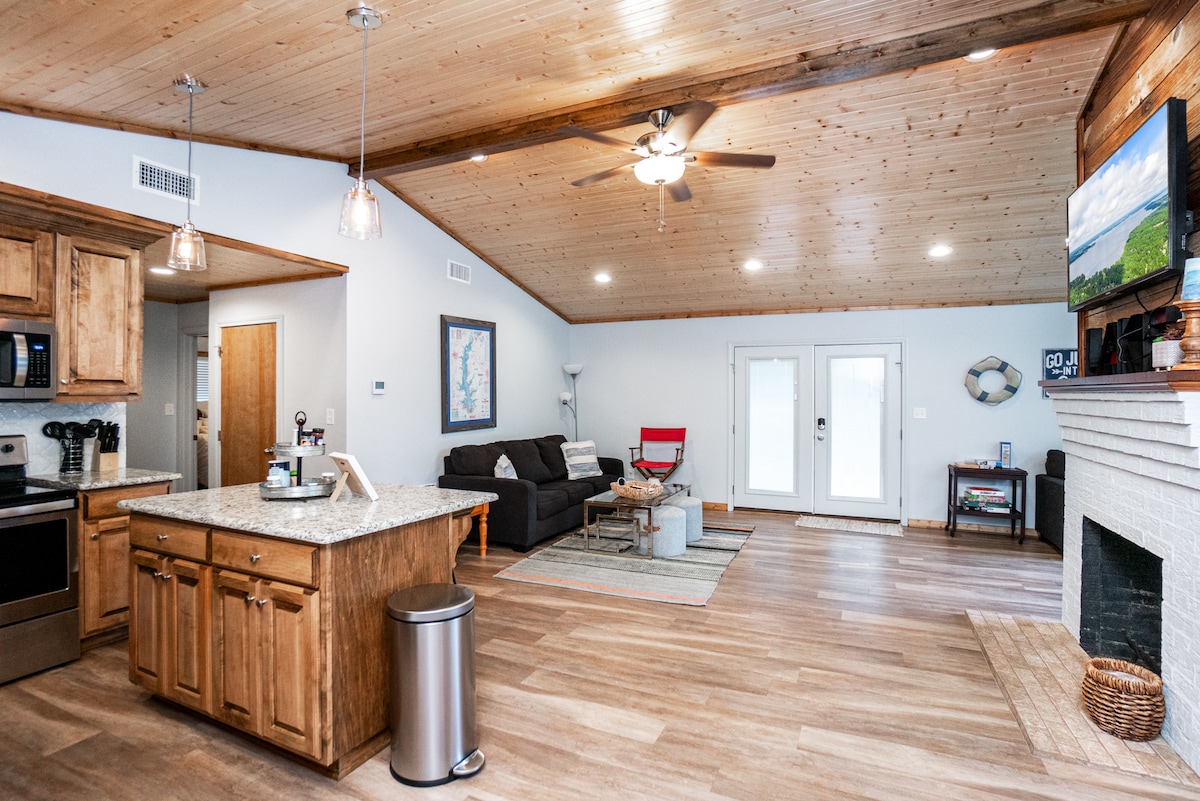 Bienvenido a Sunnyside Cabin en Lake O' the Pines. Esta propiedad de nueva construcción frente al lago tiene capacidad para hasta 12 huéspedes. Con baños dobles y una segunda planta con capacidad para ocho personas, esta casa es ideal para que dos familias disfruten de la belleza del lago O' the Pines. Servicios de la propiedad: - Cornhole, ping pong, futbolín - Pesca, deportes acuáticos, entorno tranquilo. - Frente al lago, acceso en barco, kayak (incluido) - Chimeneas al aire libre con TV y columpios Deja que tu estrés se desvanezca en nuestro paraíso de Sunnyside.