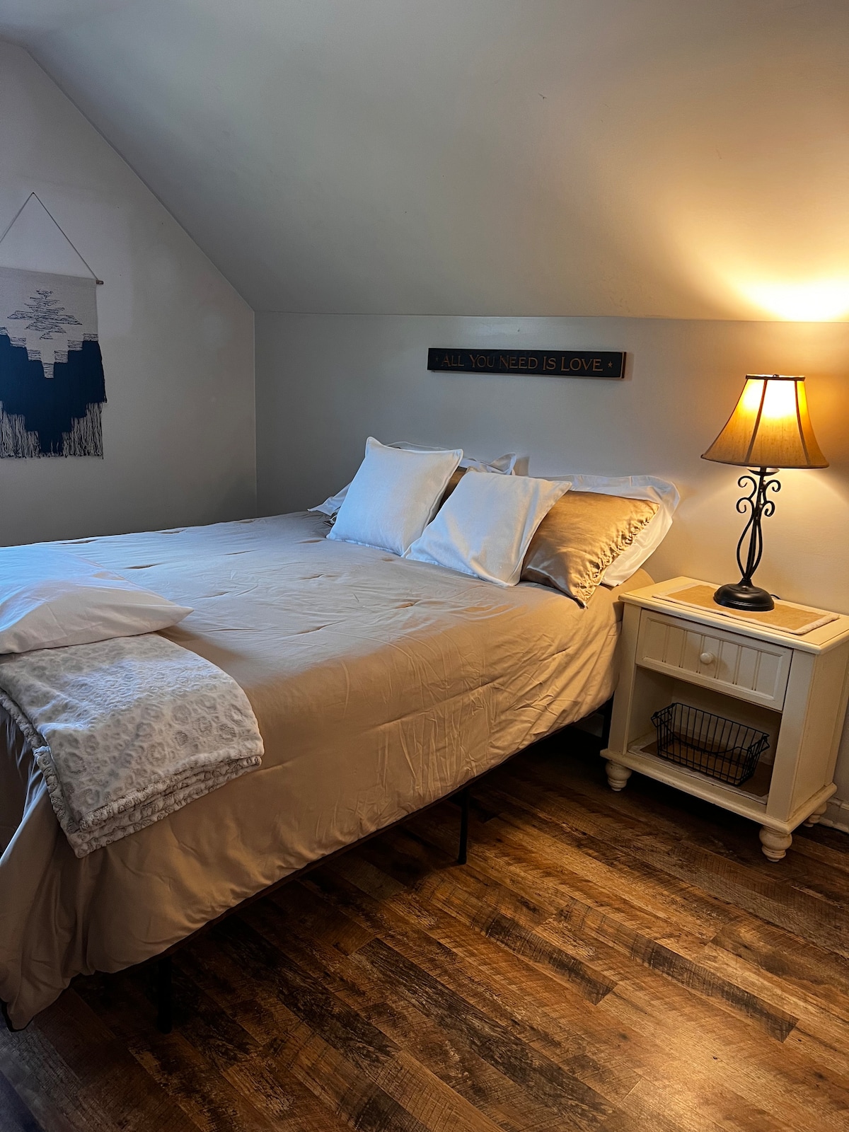 Cocina en una cocina completa y cena en una mesa de granja hecha a medida para el espacio. La sensación aquí es de moderna elegancia campestre, donde la sencillez terrosa se une al estilo sofisticado de los grifos de latón, las modernas lámparas y los suelos bellamente decorados. Bien iluminado, el espacio es muy hogareño, con un sofá cama tamaño queen y camas extra cómodas. El diseño abierto hace que el loft se sienta amplio y muy espacioso. Número de permiso para alquileres de corta duración: 2016071615 ¡Te encantarán los nuevos detalles modernos y la ubicación! ¡Estamos cerca de todo! ¡El centro de la ciudad, 5 puntos y el barranco están a 5-10 minutos en Uber o Lyft! Los huéspedes pueden utilizar todo el apartamento del garaje de arriba, así como el patio trasero si lo desean. Mi marido y yo estamos disponibles para cualquier pregunta que tengas o ayuda las 24 horas del día, los 7 días de la semana. El loft se encuentra en la parte trasera de la casa principal, ubicada en una calle tranquila y cerca de excelentes cafeterías y restaurantes. Este barrio histórico no podría ser más cómodo para los puntos de interés de Nashville: está justo al lado de la interestatal, pero escondido para conseguir esa sensación de vecindad. Permiso para alquileres de corta duración n.º 2016071615 Uber o Lyft siempre son muy fáciles de usar y están a menos de 5 minutos de 5 puntos o del centro de la ciudad. También hay taxis disponibles y, por supuesto, hay aparcamiento junto a la unidad si traes tu propio transporte.