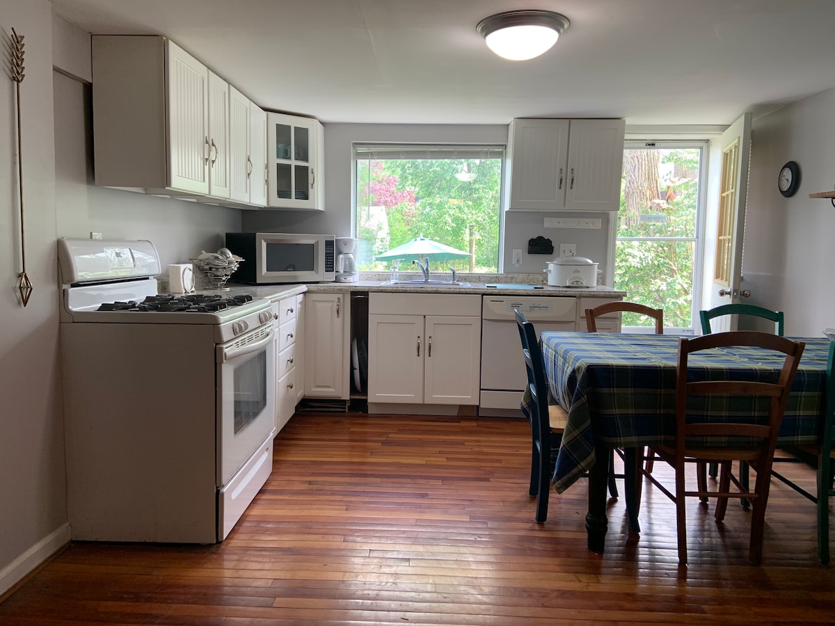 Acogedor apartamento de 1 dormitorio en el segundo piso Comedor en la cocina con asientos a la altura de la encimera 2 camas tamaño queen (cama y sofá plegable) Lavavajillas y horno microondas nuevos Todos los utensilios de cocina, cubiertos y electrodomésticos de cocina Totalmente amueblado con todas las sábanas, toallas y suministro inicial de jabones, champús. Amplio espacio en el armario y almacenamiento Filtro de agua para toda la casa Lavandería ubicada en el sótano Estacionamiento fuera de la calle para 2 automóviles