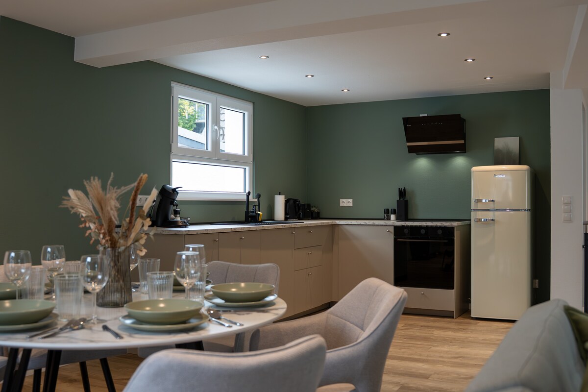El apartamento de 82 metros cuadrados con entrada independiente forma parte de nuestro bungalow estilo Bauhaus. La casa está en el campo, muy tranquila, a 7 km de Nürburgring. Tanto los entusiastas de las carreras como los excursionistas y ciclistas encontrarán el lugar ideal aquí. Sendero de ensueño, Hohe Acht, Laacher See y el Maare en el Eifel volcánico. El apartamento tiene capacidad para 5 personas (1 habitación doble, 1 habitación con dos camas individuales y 1 cama extraíble) y tiene una sala de estar-comedor, cocina, baño (ducha, bañera), aseo, terraza privada.