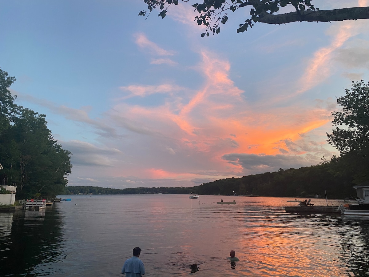 Casa privada frente al lago Pocotopaug con muelle de pesca, kayaks, chimenea y espectaculares vistas del atardecer, perfecta para escapadas familiares y de amigos. Bienvenido a Lakeside Ferns, donde disfrutarás de acceso directo al agua y un muelle privado para nadar, pescar, hacer kayak, piragüismo y paseos en bote. Prepara la cena a la parrilla, relájate en la hamaca junto al agua y reúnete alrededor del fogón al aire libre para disfrutar de s'mores bajo las estrellas. Termina cada día con impresionantes puestas de sol sobre el lago, hermosas en cada estación.