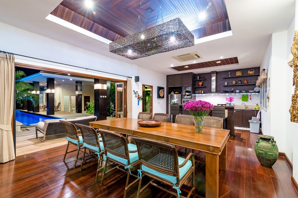 Esta encantadora villa con piscina tiene una gran sala de estar y comedor de planta abierta. Cuenta con 3 dormitorios, 2 baños y una cocina totalmente equipada. La electricidad y el agua están incluidos en el precio. La tarifa de servicio de Airbnb también está incluida. La cocina y la barra de desayuno tienen vistas al jardín y al área de la piscina, que es un espacio perfecto para disfrutar de tus vacaciones familiares. Puedes relajarte en la hermosa terraza y refrescarte en la piscina privada con jacuzzi. Hay un bar/restaurante en el hotel con música, dardos y mesa de billar.