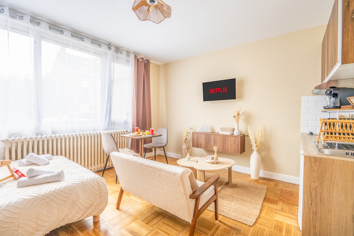 🌟 Venga a vivir un momento de descanso en pareja en nuestro encantador alojamiento romántico, frente al hermoso parque de la Rhônelle. ➡️ Disfrute de un spa privado de la marca de prestigio "Jacuzzi" para relajarse después de un día de descubrimiento de la ciudad. 🌿 Despierta con el sonido de la naturaleza, escucharás el canto de los pájaros cuando te despiertes. ⭐ Reserva ahora para una escapada inolvidable, en el barrio más popular de Valenciennes.