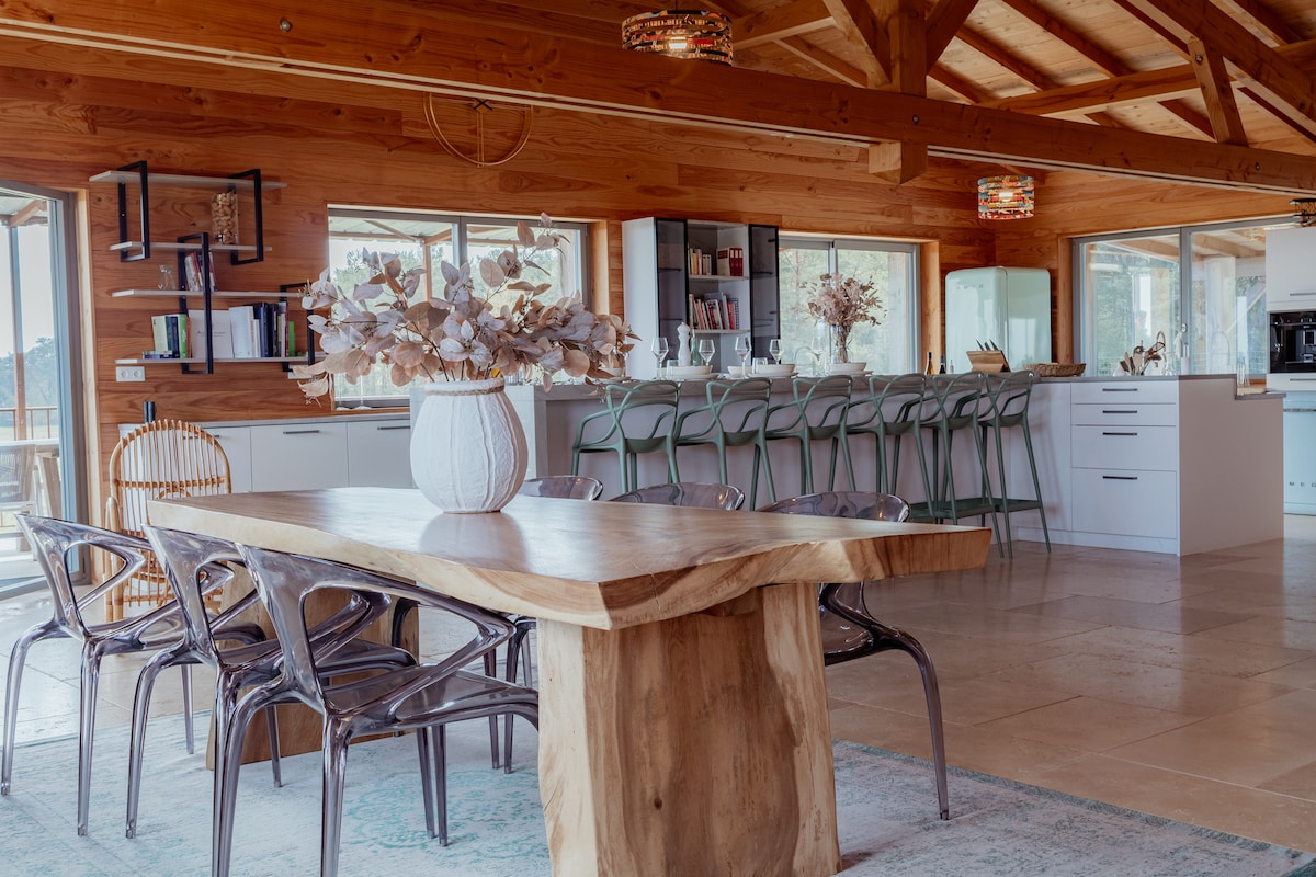 Placer y relajación son las palabras clave de este pequeño pedazo de paraíso para los enamorados. En MAYA HUEL, alojamiento de turismo de 5 estrellas, acogedor, nuevo y equipado, que combina la madera y la piedra natural, es la comodidad lo que prevalece. En la terraza, un gran baño nórdico, totalmente privado con led, jacuzzi y bañera de hidromasaje le espera, tanto en verano como en invierno, y le promete momentos de relajación bien merecidos. Entrega a domicilio de paquetes de comida (francesa o mexicana) y desayunos.