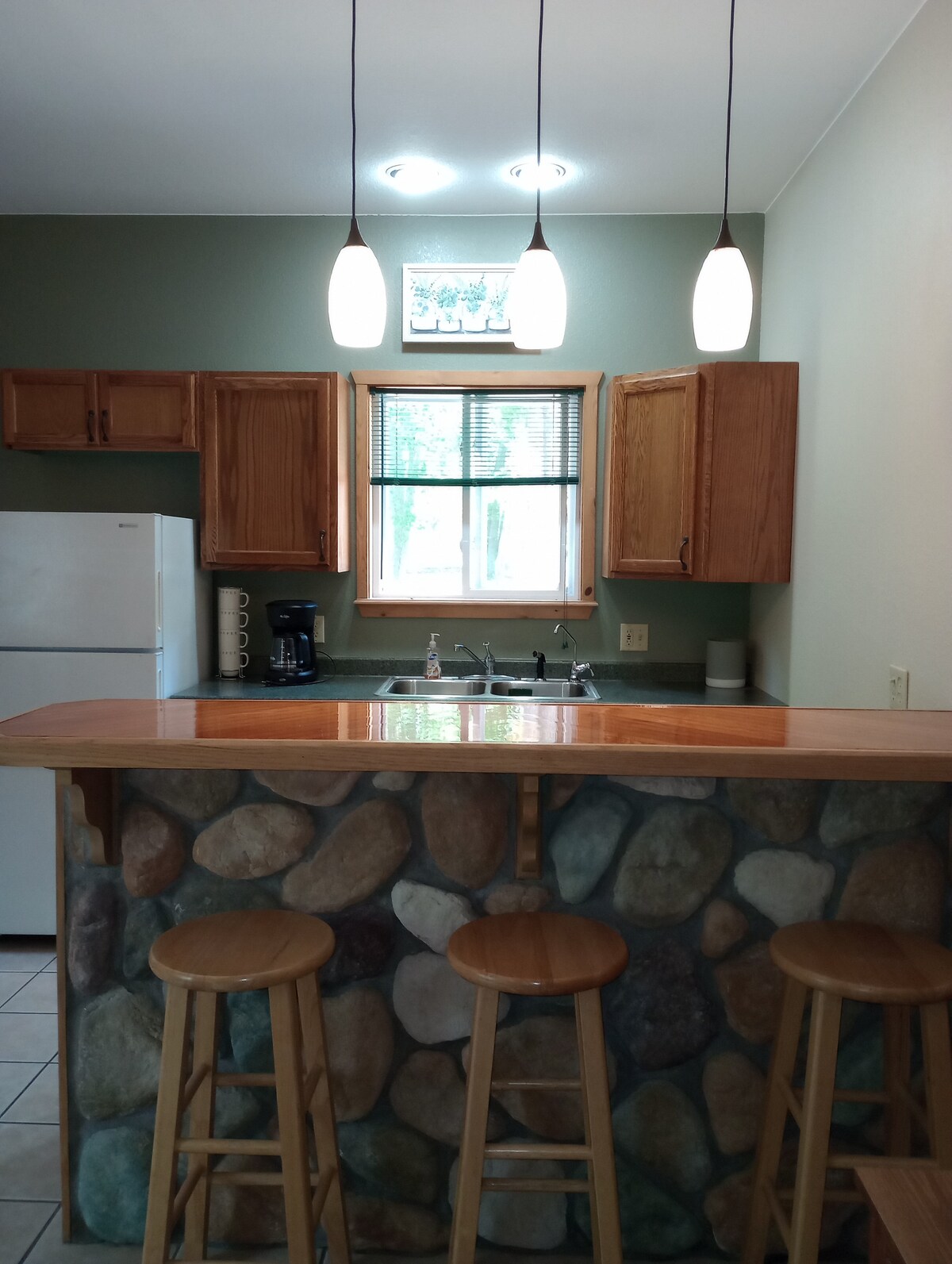 Two Trees es una casa llena de luz en el lago Hurón que es un lugar perfecto para parejas, familias pequeñas y viajeros solitarios. Situada en un terreno arbolado, Two Trees tiene capacidad para cuatro personas y cuenta con una cocina y un baño recién renovados. El camino a nuestra playa privada de arena serpentea a través del bosque y baja 38 escalones de piedra, que son un desafío para algunos. La casa está a poca distancia en coche del monumento a Lumberman, el faro de Sturgeon Point y los jardines de los dinosaurios. Está cerca de la US 23, por lo que habrá ruido de la carretera.