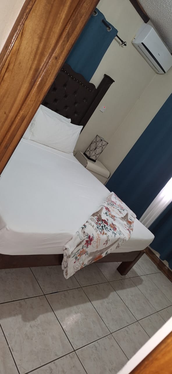 This unique 1 bedroom 1 bath apartment is perfectly located on a quiet secured private property across from hotel Versalles in May Pen, Clarendon. It is approx. 5 mins drive from the main town and 3 mins from highway 2000 and Halse Hall Great House. Enjoy the great taste of a variety of meals prepared at the popular "Seafood Wagon " Restaurant which is located at the back of the property. Other restaurants in close proximity are KFC, Burger King, Popeyes (Millennium Mall).