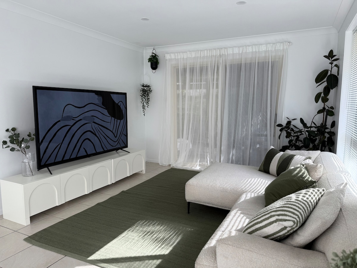 Con una ubicación céntrica para todo lo que ofrece la Costa Dorada, esta es una unidad independiente de lujo recién renovada que promueve una sensación fresca y vacacional. Situado en una calle sin salida en la planta baja de nuestra casa, este alojamiento tiene una entrada lateral independiente, wifi, aparcamiento seguro y un bonito patio con jardín para tomar una copa al atardecer o un café por la mañana. Un gran lugar para retirarse y aún así estar cerca de todas las atracciones de Gold Coast. Ten en cuenta que, como propietarios, vivimos encima de este alojamiento.