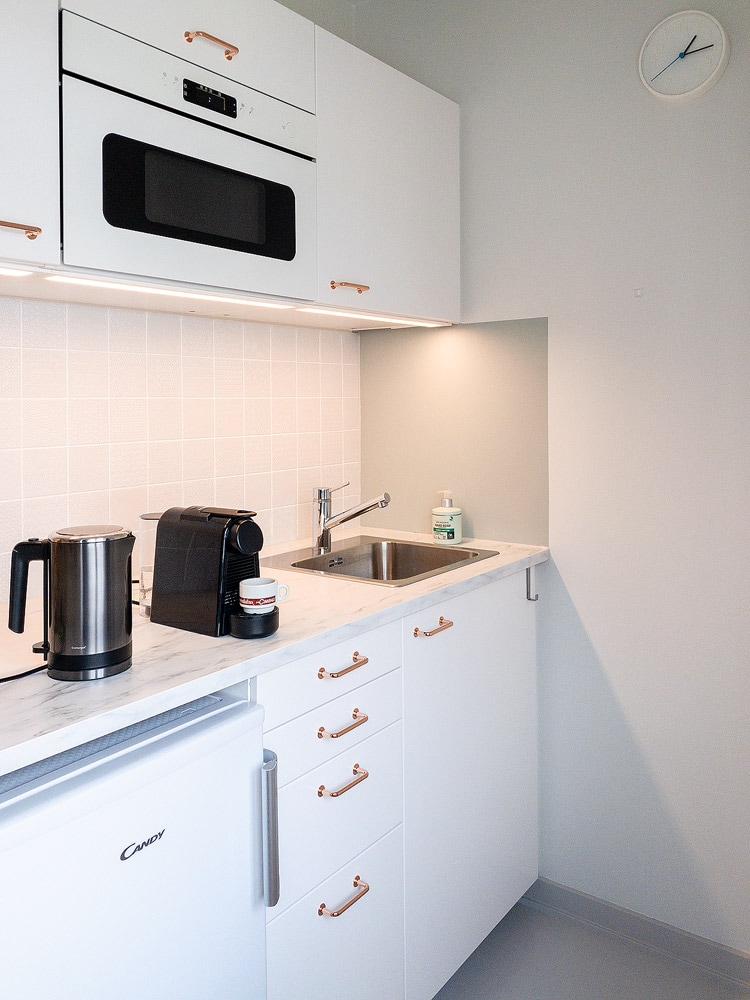 Un apartamento tipo estudio amueblado con estilo escandinavo y una cocina de diseño abierto totalmente equipada. Los apartamentos Scandi tienen un diseño luminoso y mucha luz natural. Scandi ofrece comodidad y conveniencia para la vida diaria. Consigue cosas prácticas como una cocina totalmente equipada, lavadora, wifi rápido, asistencia 24/7 y limpieza profesional regular, y cosas divertidas como un televisor inteligente. Alójate con comodidad durante el tiempo que quieras: días, semanas o meses.