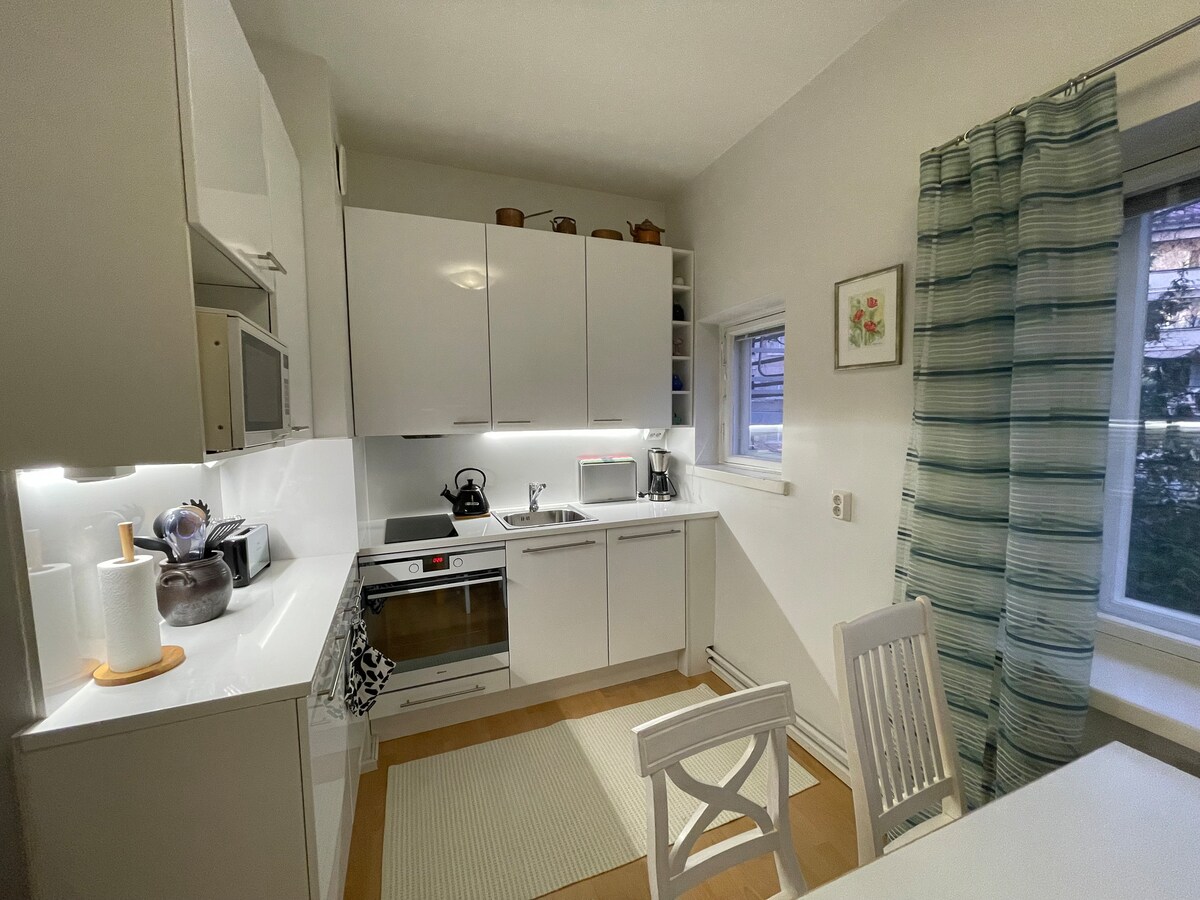 Welcome to your recently renovated city center studio apartment in Helsinki! Situated in a prime location, the stylish space is steps away from attractions, cafes, and restaurants. The building, dating back to the 1920s, boasts high ceilings and wide windowsills, adding charm. Inside, enjoy amenities like high-speed WiFi, Netflix on a 55" TV, a hairdryer, and an iron. The apartment comfortably sleeps up to four. Book your stay for a perfect urban retreat in Helsinki!